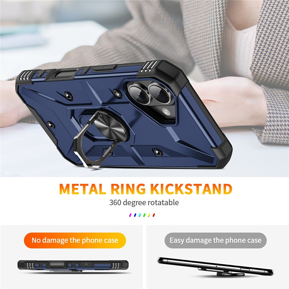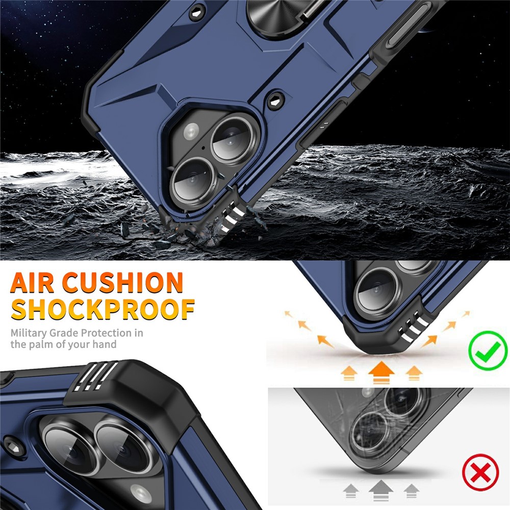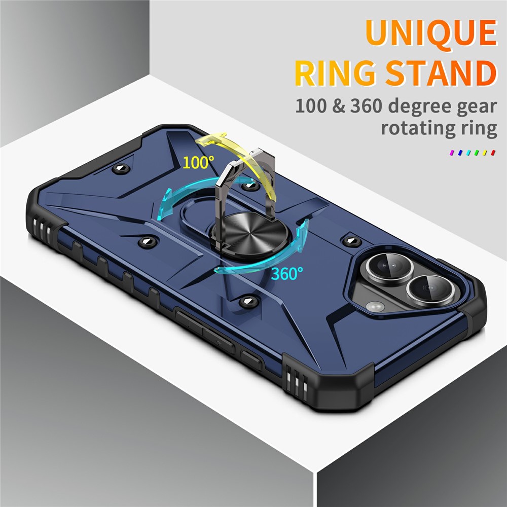 Bulk Purchasing For iPhone 16 Case PC + TPU Anti-Drop Phone Cover with Ring Kickstand – Blue