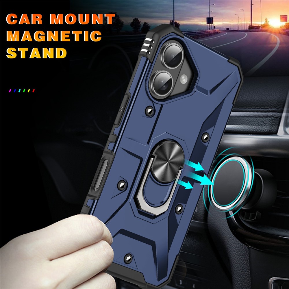 Bulk Purchasing For iPhone 16 Case PC + TPU Anti-Drop Phone Cover with Ring Kickstand - Blue $13.91