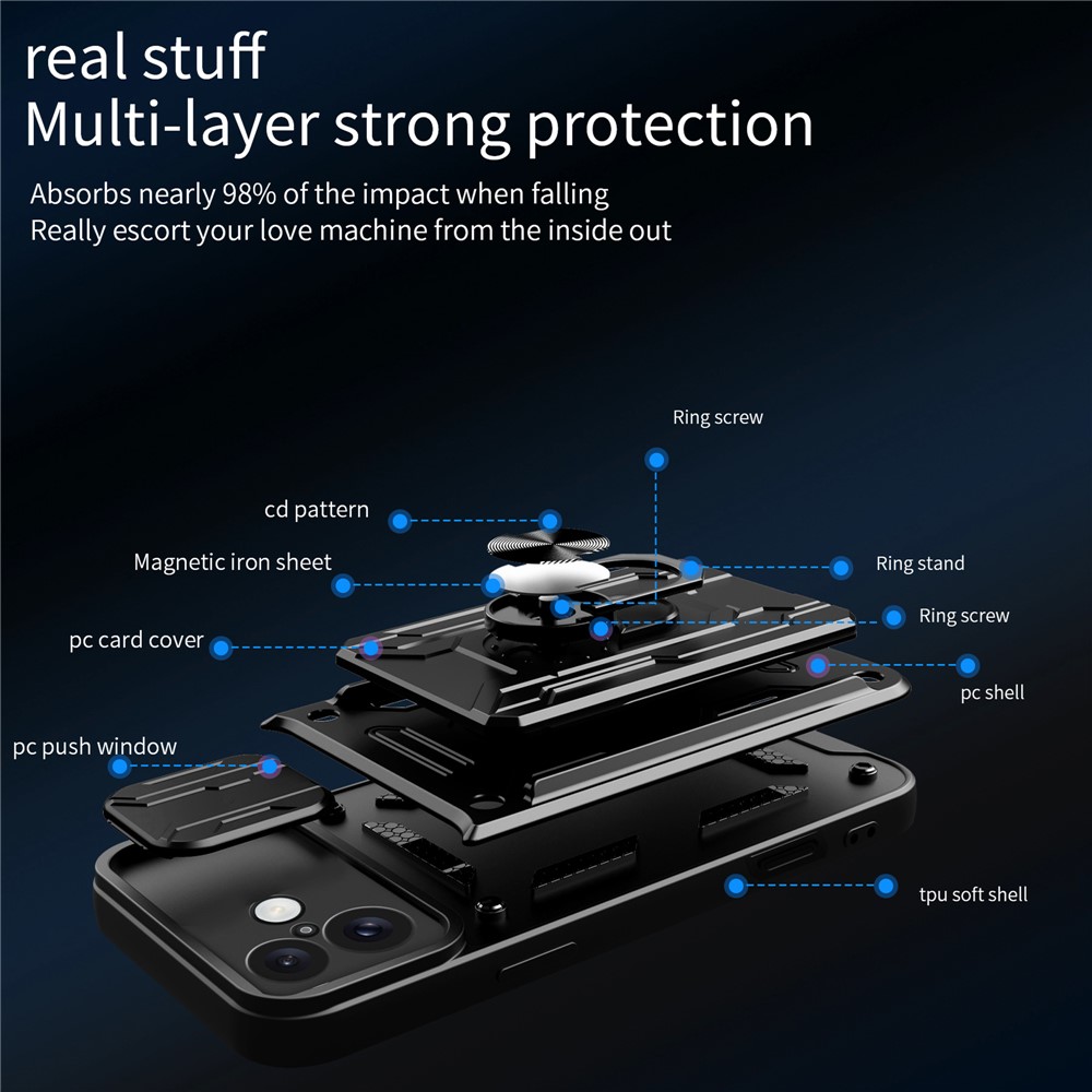 - Push-Pull Card Holder This case features a convenient push-pull card slot in the back, allowing you to store essential cards such as credit cards or IDs