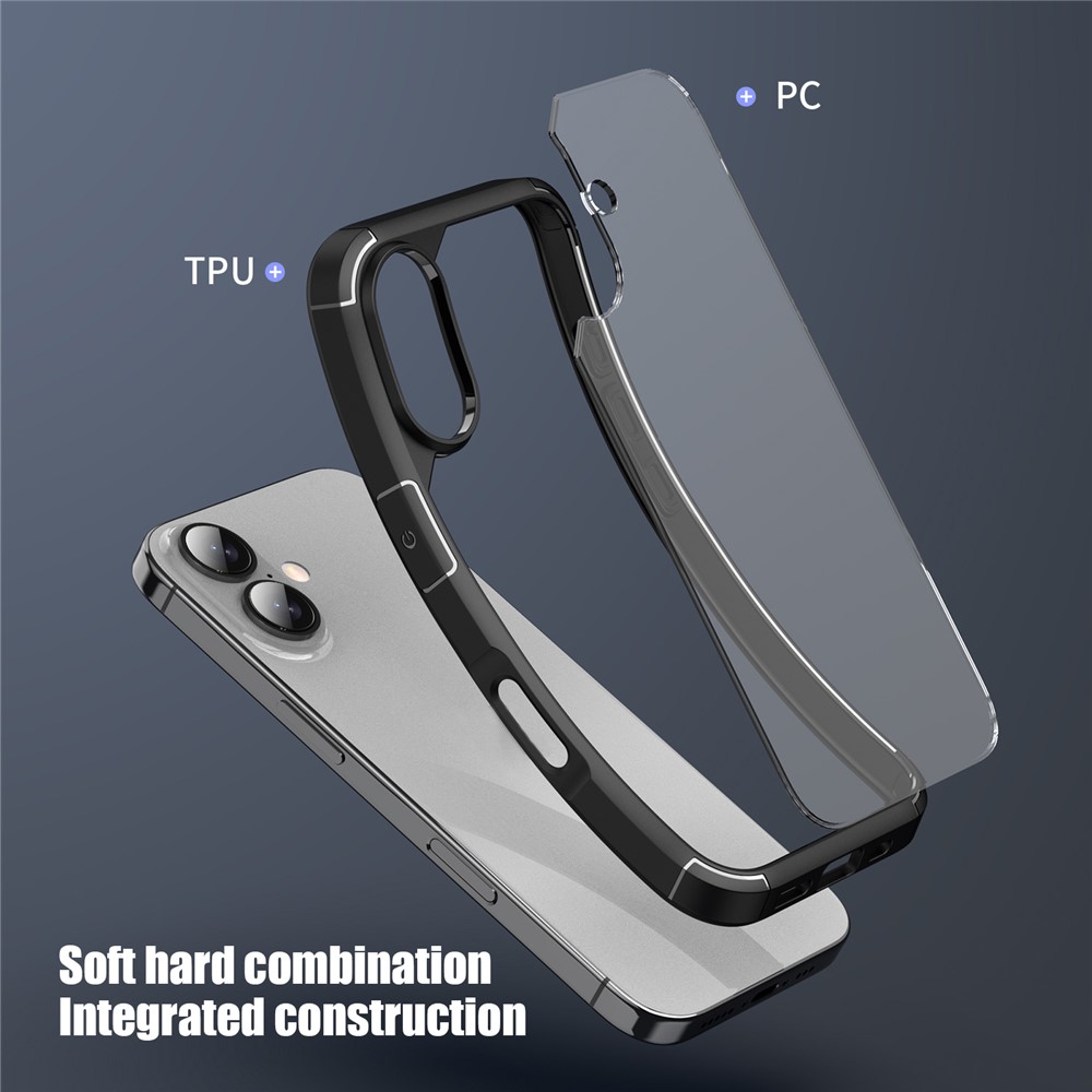 Bulk Purchasing For iPhone 16 Plus Case Reinforced Corner TPU + PC Clear Back Cover - Black