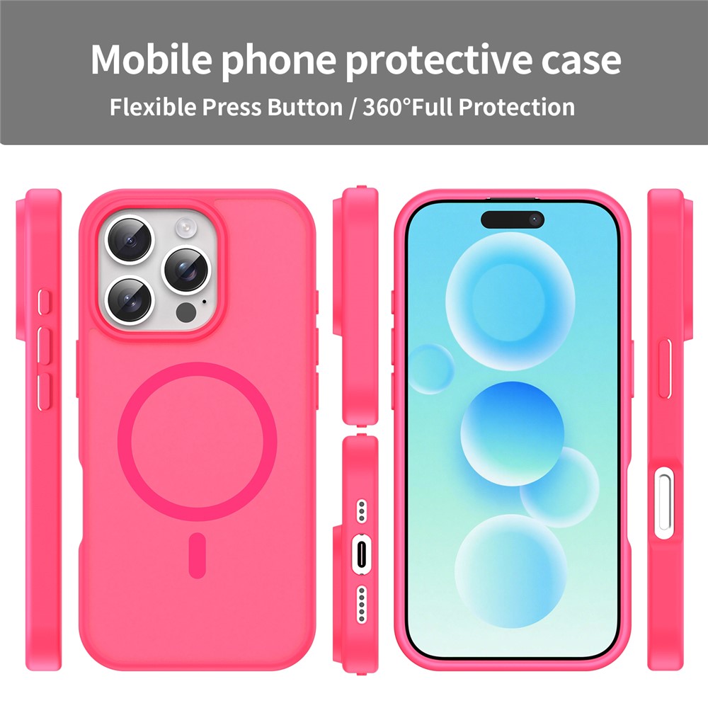 • Bulk Purchasing For iPhone 16 Pro Case Compatible with MagSafe Skin Touch Matte TPU PC Phone Back Cover - Pink