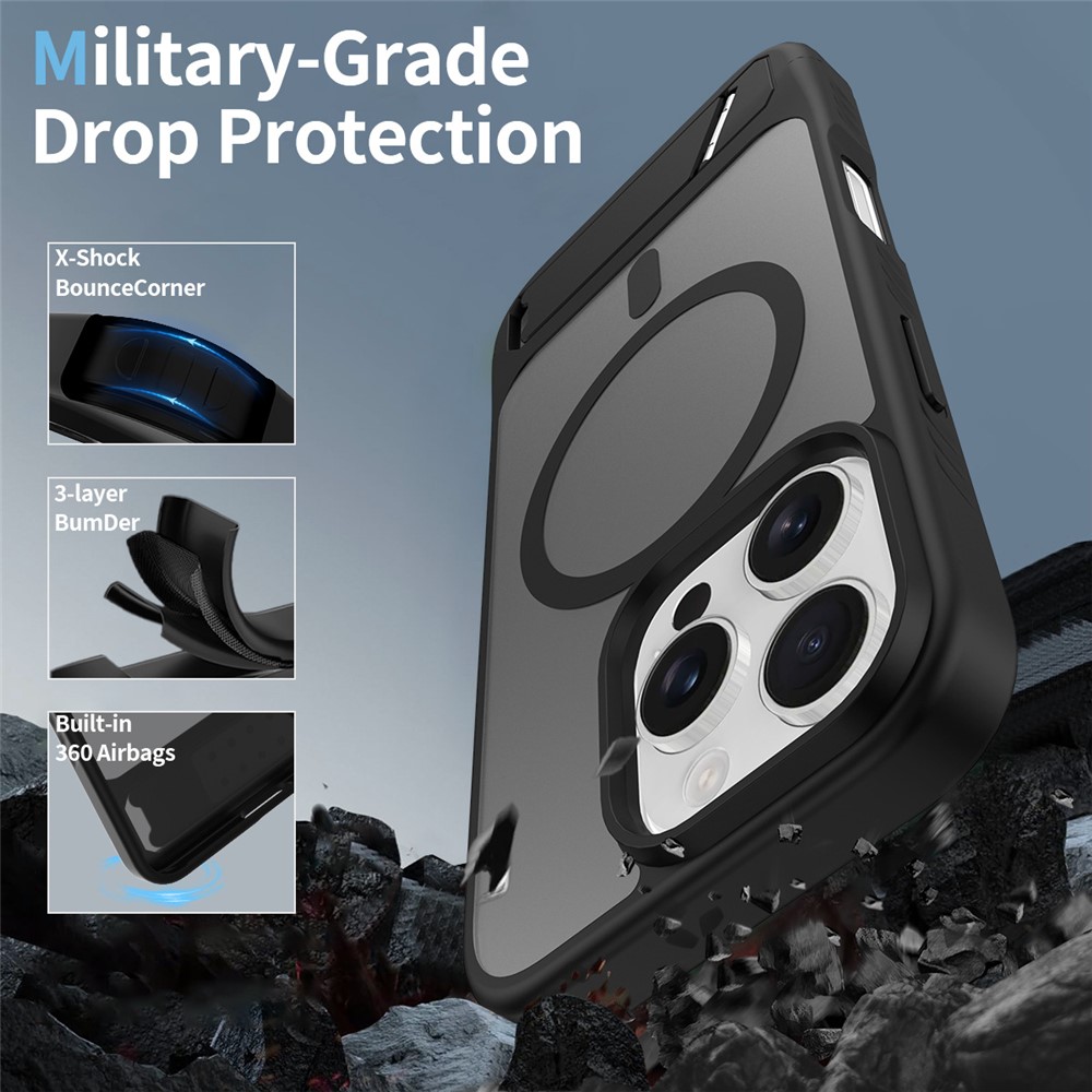 - Military-Grade Drop Defense Features X-Shock air-cushioned corners, 3-layer bumper protection, and 360 degree built-in airbags that absorb shocks and prevent damage from accidental drops or bumps.