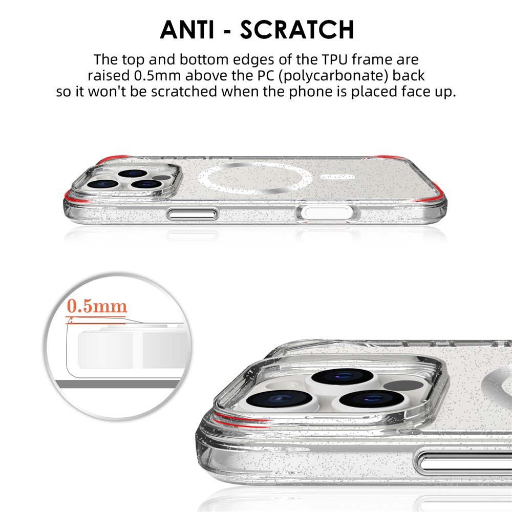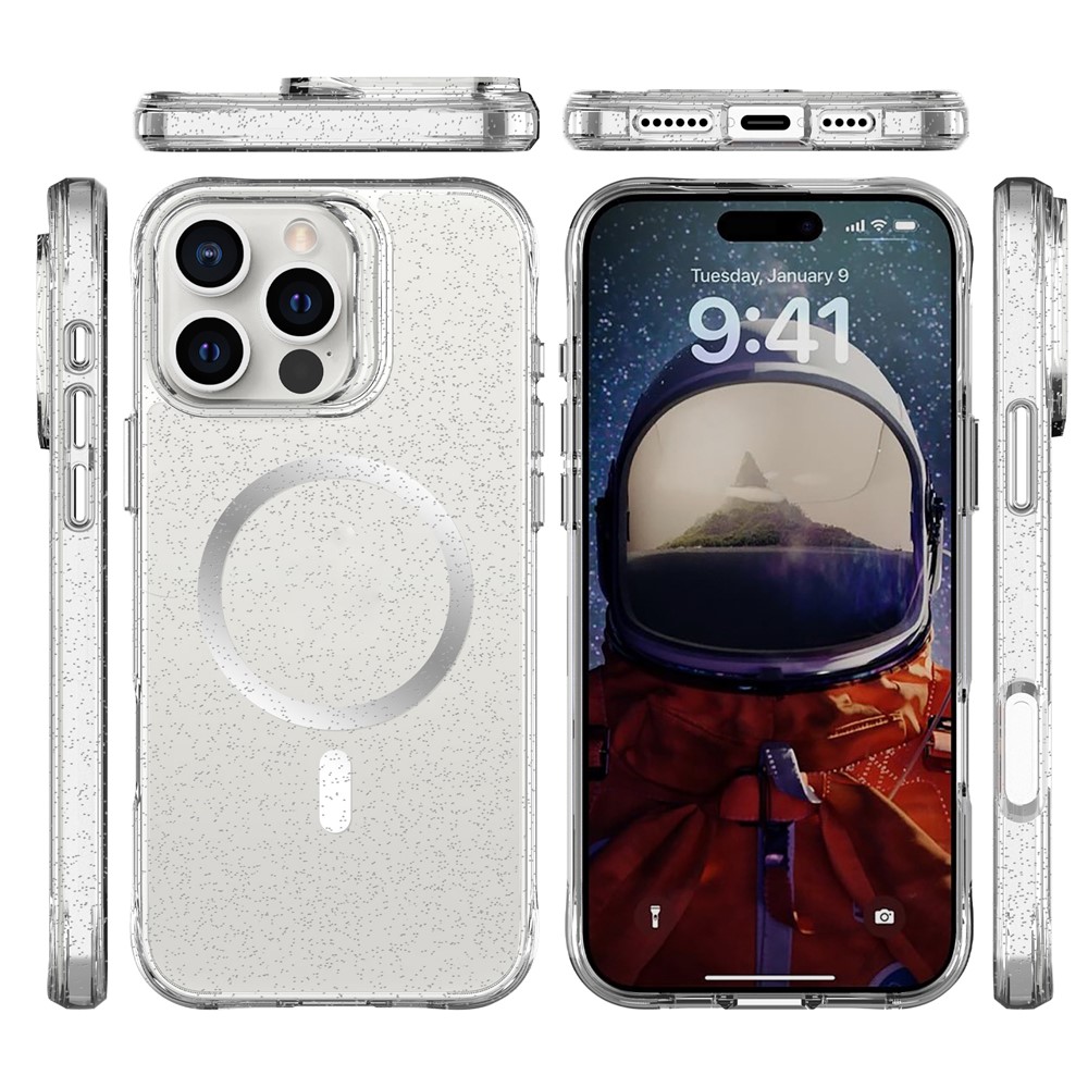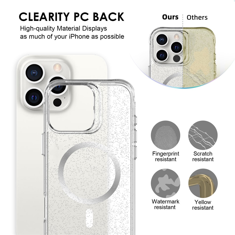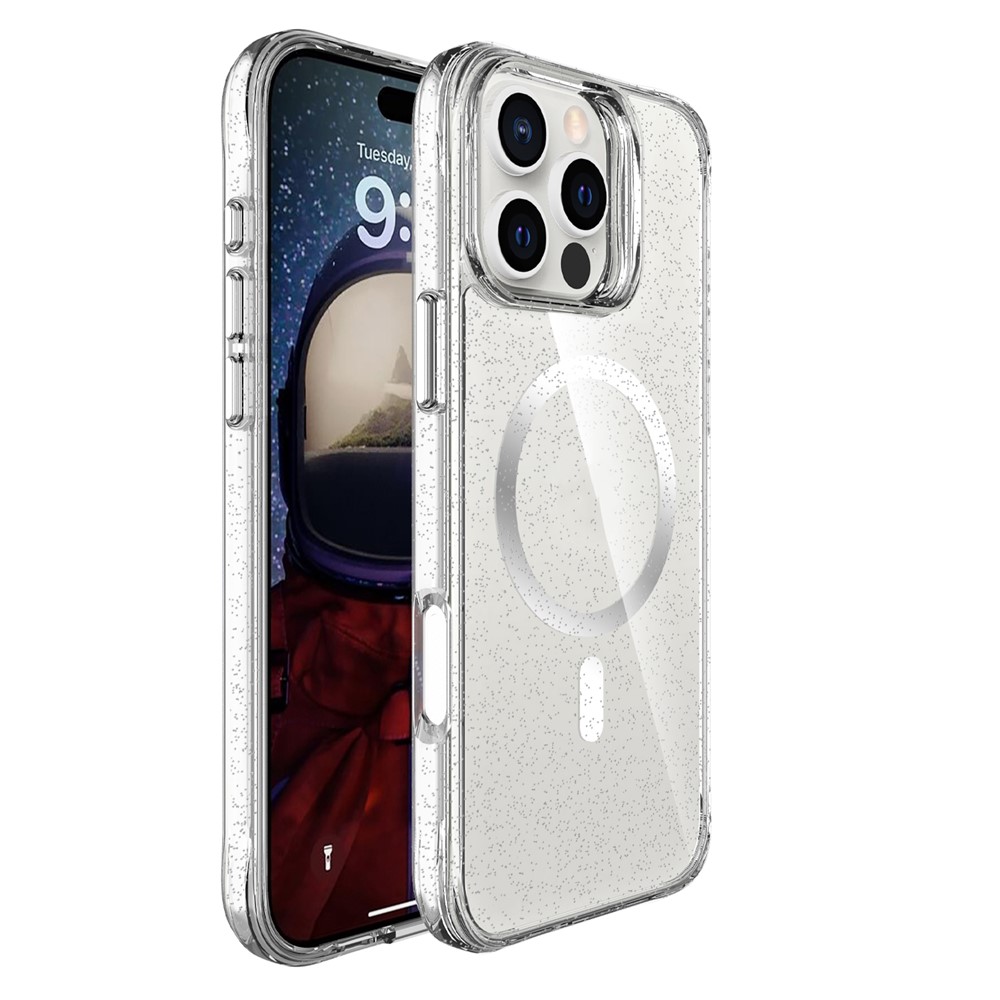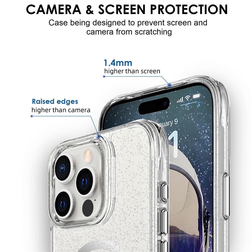 - Stylish Glitter Finish Crystal-clear case infused with glitter powder, adding a sparkling starry look while maintaining full transparency.