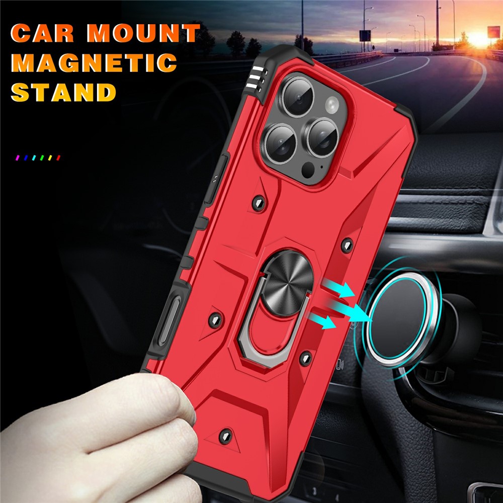 Bulk Purchasing For iPhone 16 Pro Max Case PC + TPU Anti-Drop Phone Cover with Ring Kickstand - Red $13.91