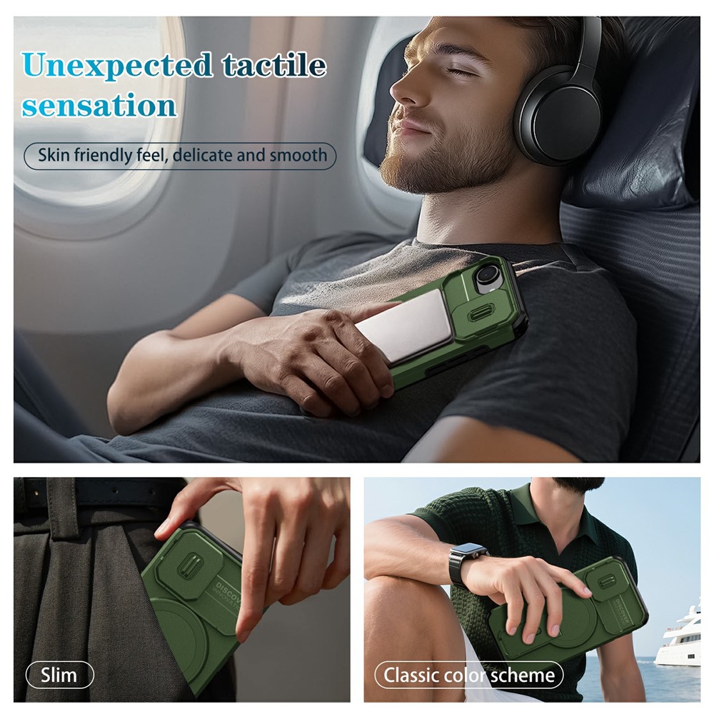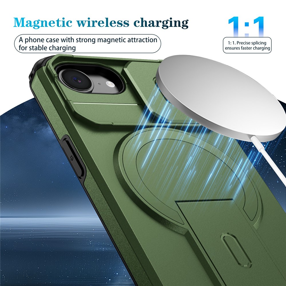 Bulk Purchasing For iPhone 16e Magnetic Phone Case PC + TPU Cover with Hidden Kickstand and Sliding Camera Cover – Green