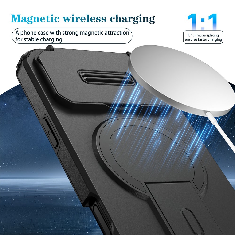 - Magnetic Wireless Charging Integrated magnetic ring ensures strong magnetic attraction for stable and faster wireless charging, fully compatible with MagSafe accessories.
