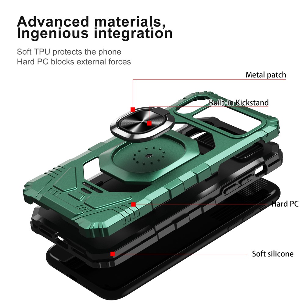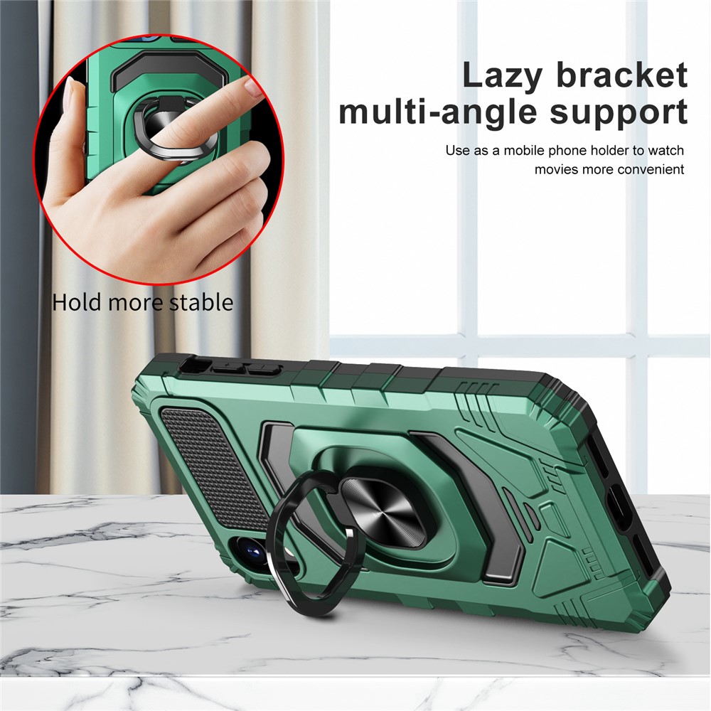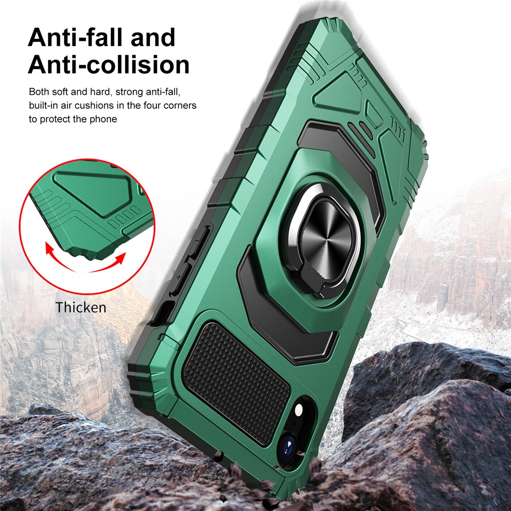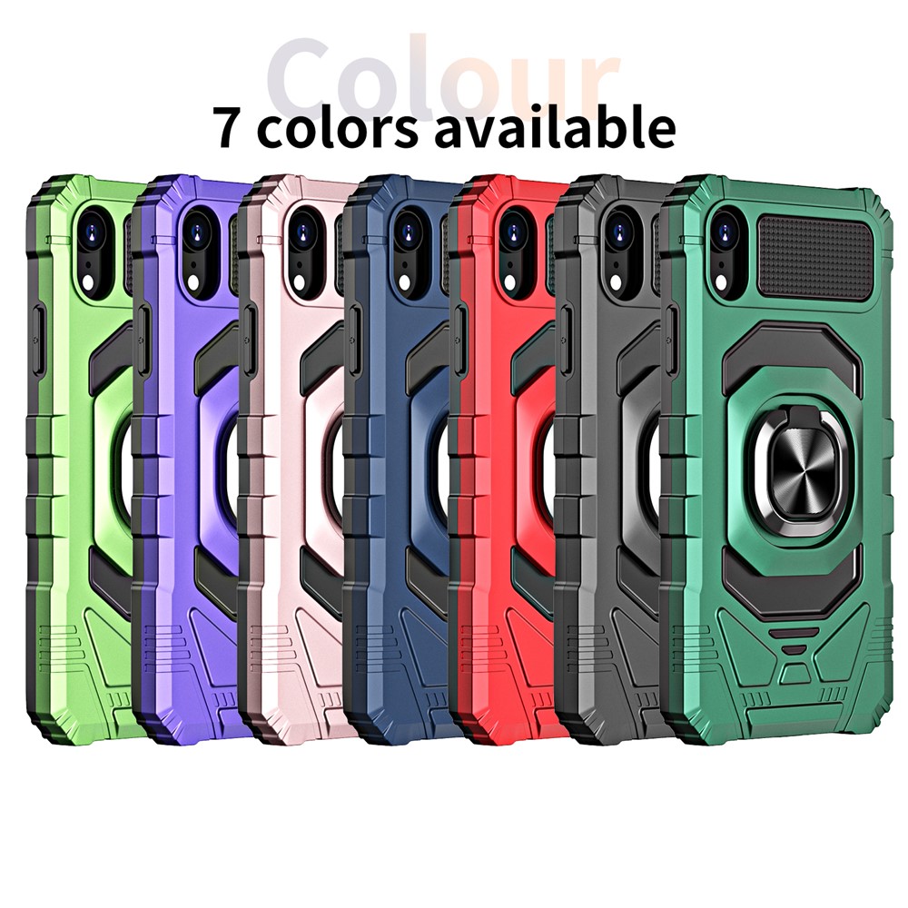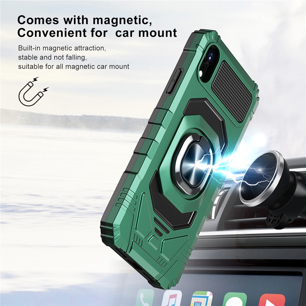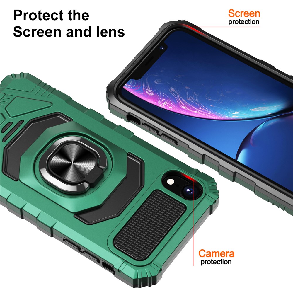 Bulk Purchasing For iPhone XR 6.1 inch Case PC+TPU Anti-Shock Ring Kickstand Cell Phone Cover – Midnight Green
