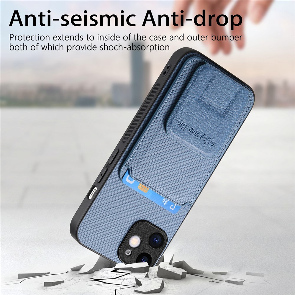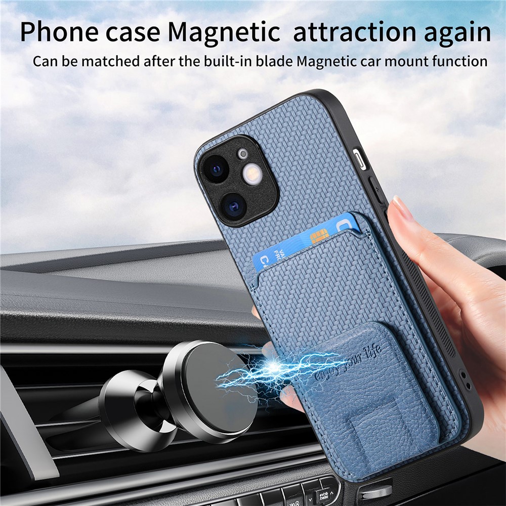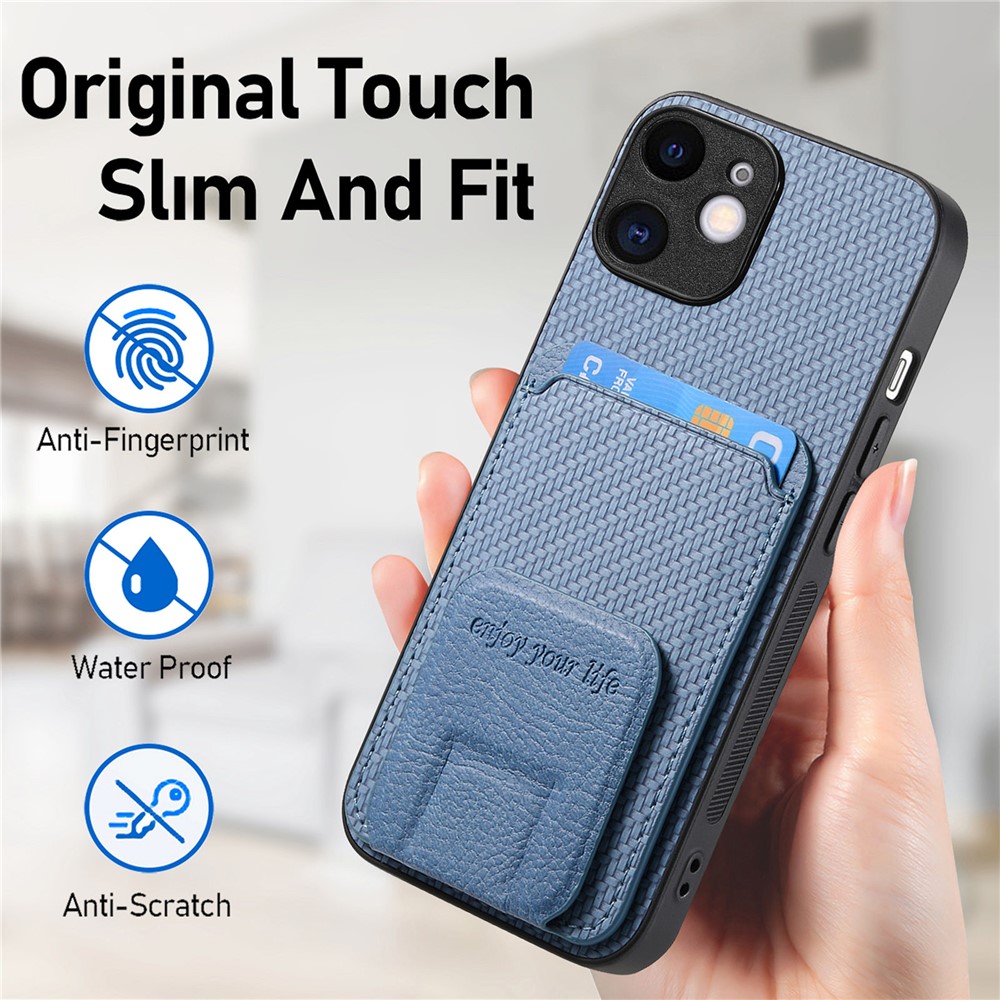 C1-11 for iPhone 11 Case Kickstand Carbon Fiber Texture Smart Phone Cover – Blue