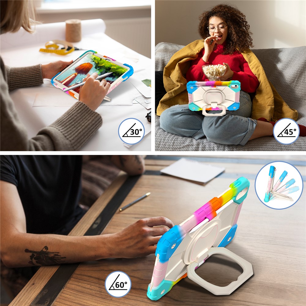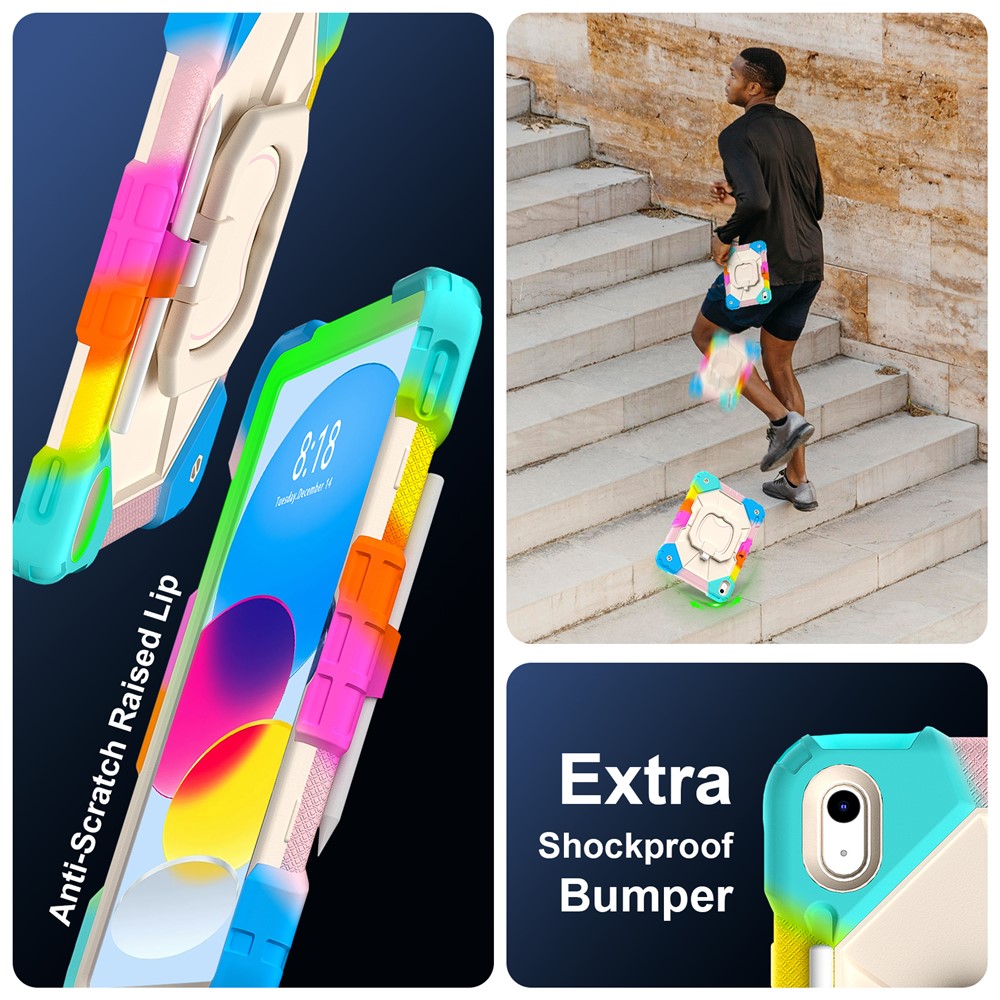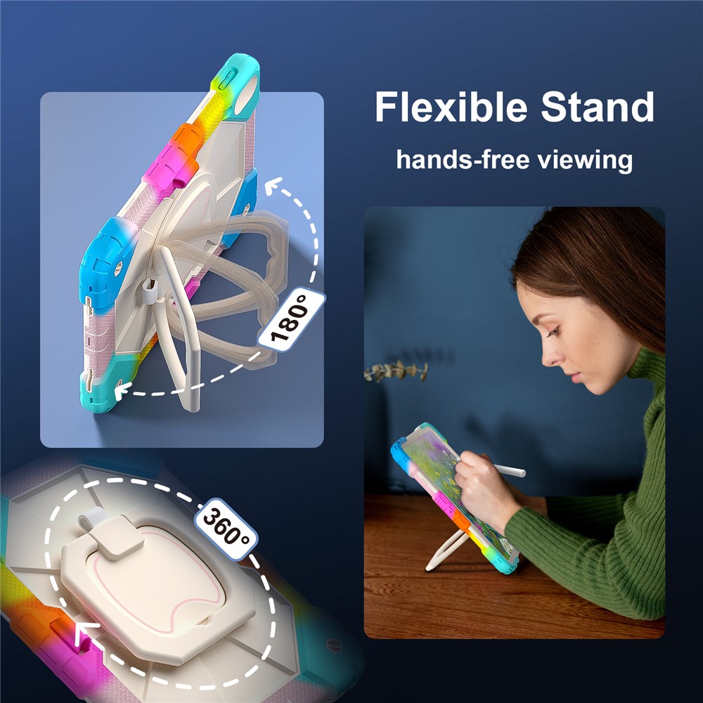 - 360-Degree Kickstand Features an integrated 360-degree rotary kickstand, allowing hands-free viewing in both landscape and portrait modes, not only a kickstand, but also is a portable strap