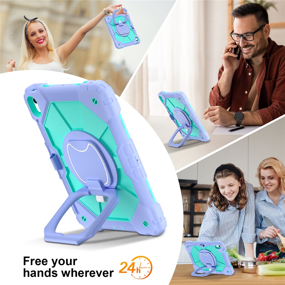 - 360-Degree Kickstand Features an integrated 360-degree rotary kickstand, allowing hands-free viewing in both landscape and portrait modes, not only a kickstand, but also is a portable strap