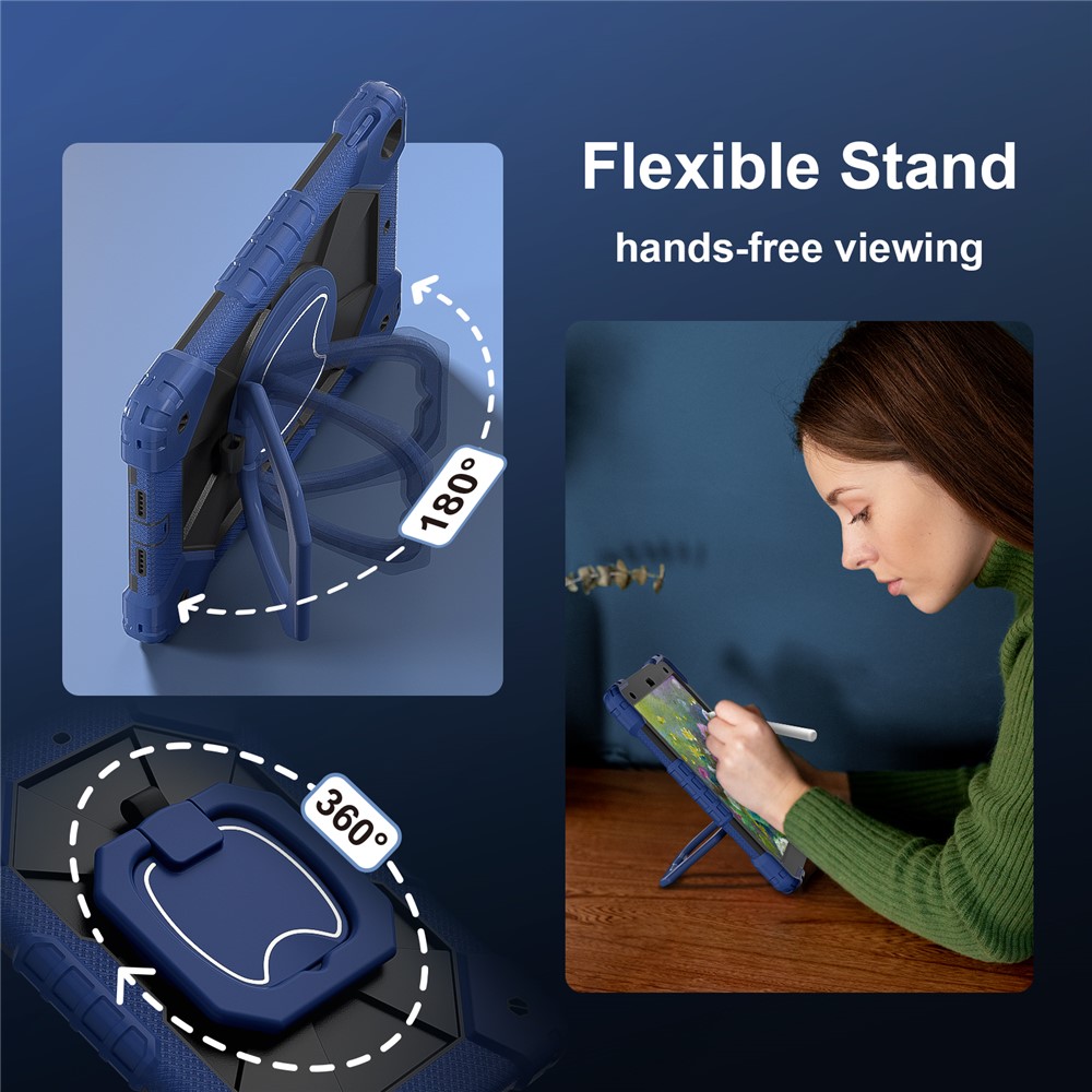 - 360-Degree Kickstand Features an integrated 360-degree rotary kickstand, allowing hands-free viewing in both landscape and portrait modes, not only a kickstand, but also is a portable strap