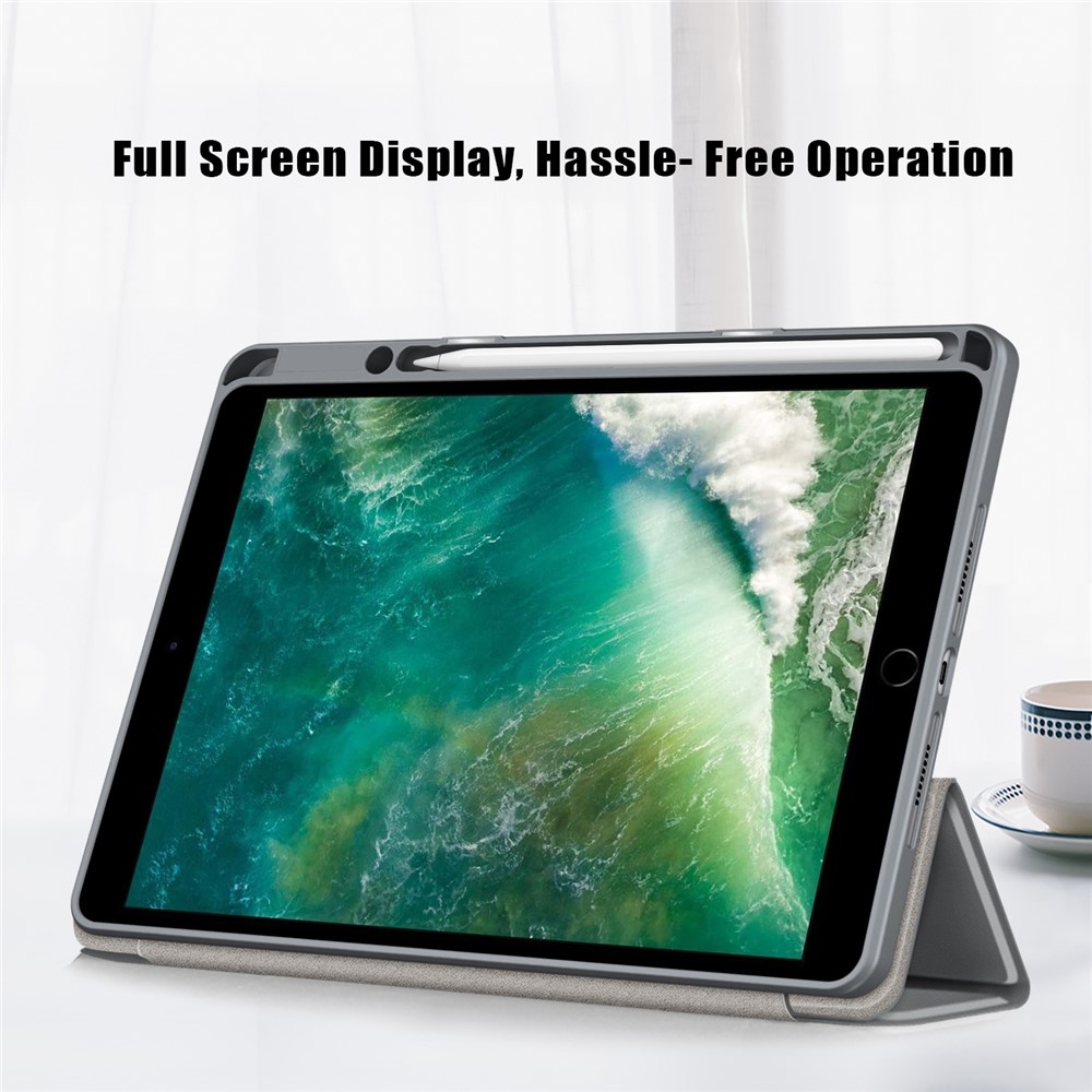 Tri-fold cover offers a sturdy and versatile stand for viewing and typing