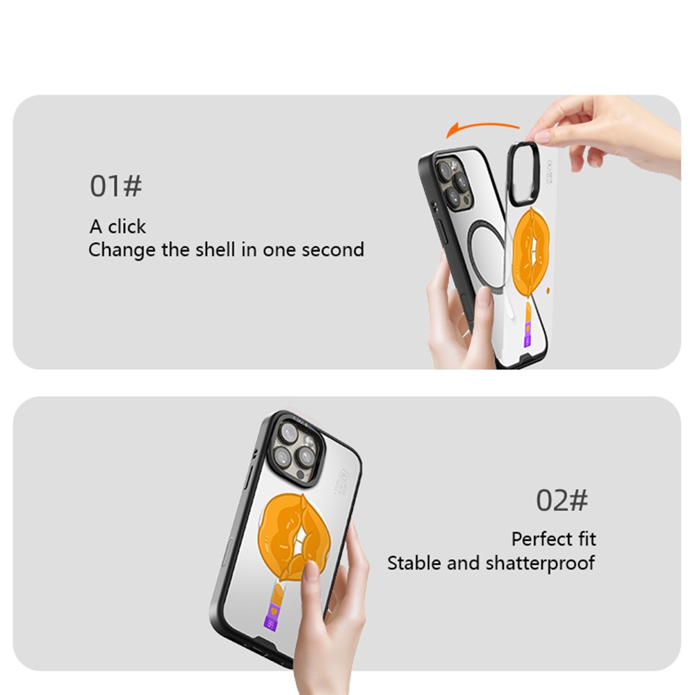 - Magnetic Interchangeable Backplates The phone case features a unique magnetic system allowing for effortless magnetic backplate swapping, personalizing your phone’s look in seconds.