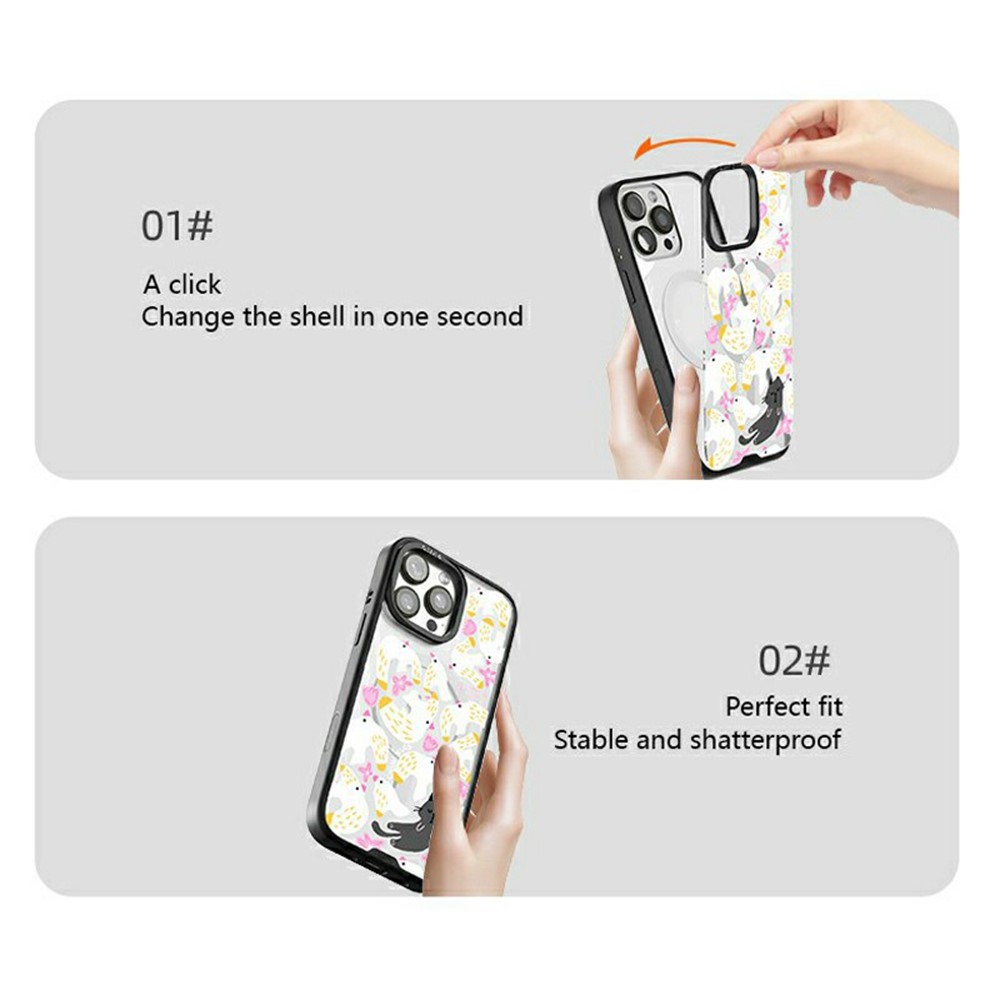 - Magnetic Interchangeable Backplates The phone case features a unique magnetic system allowing for effortless magnetic backplate swapping, personalizing your phone’s look in seconds.