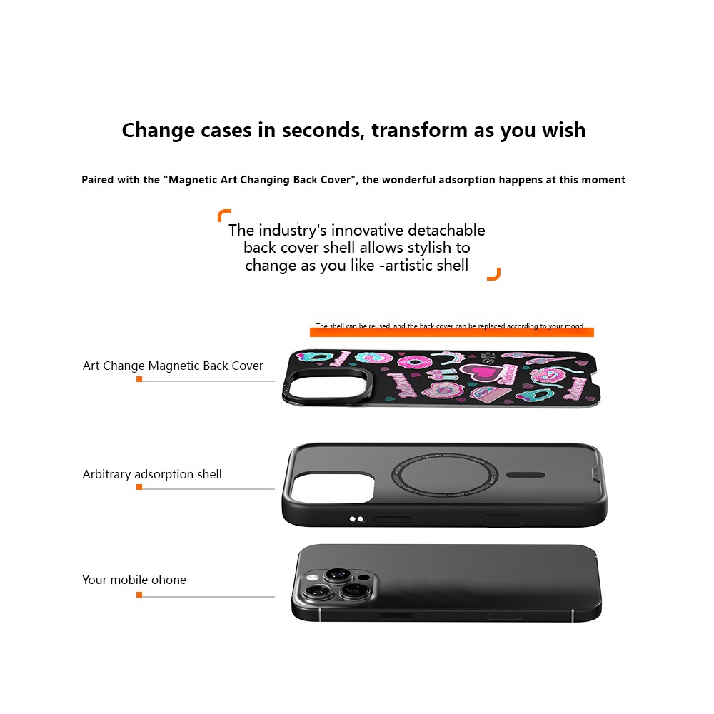 - Magnetic Interchangeable Backplates The phone case features a unique magnetic system allowing for effortless magnetic backplate swapping, personalizing your phone’s look in seconds.
