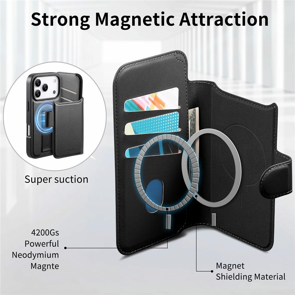 - Magnetic Detachable Design Built-in 3 card slots, and a cash pocket for credit cards, IDs, and cash, magnetic detachable wallet while doubling as a convenient stand for hands-free viewing