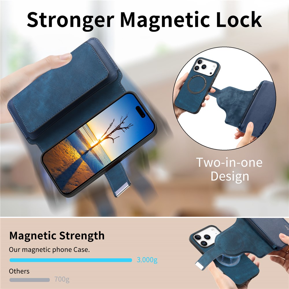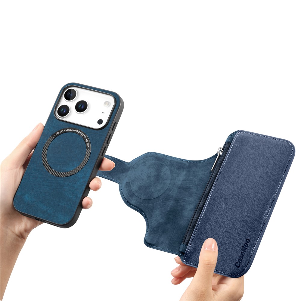 CASENEO MW-02 For iPhone 17 Pro Case Detachable Magnetic Leather Flip Phone Cover – Blue