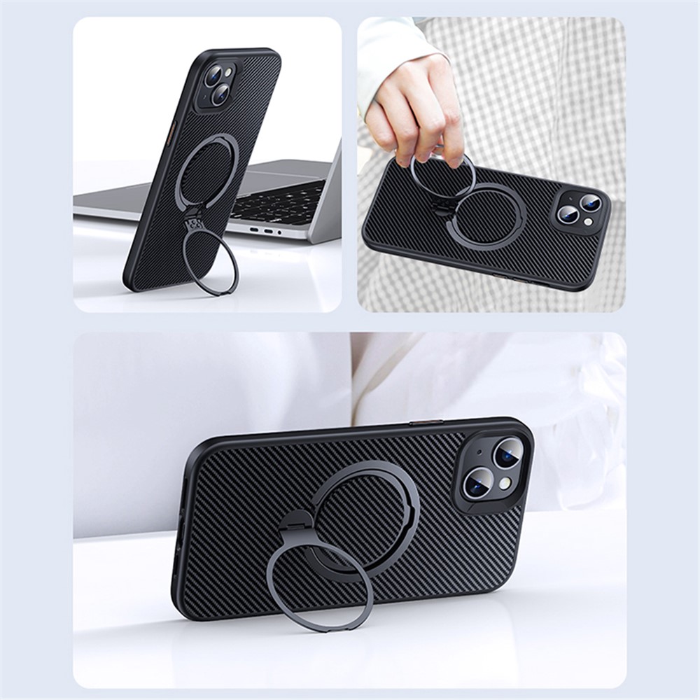 • Compatible with MagSafe Phone Cases for iPhone 14 Plus Carbon Fiber Texture Kickstand PC+TPU Phone Cover - Black