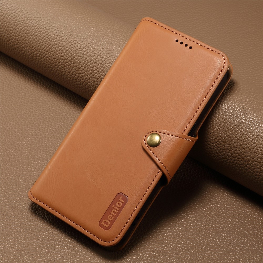• DENIOR For iPhone XR Case PU Leather Cowhide Texture Wallet Protective Phone Cover - Brown
