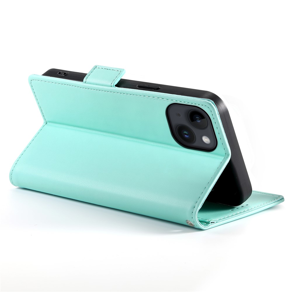 DF-010 For iPhone 14 Case Solid Color PU Leather Wallet Drop-proof Phone Cover - Mint Green $16.24