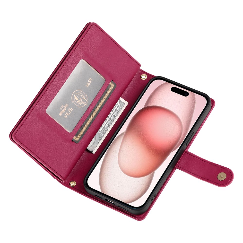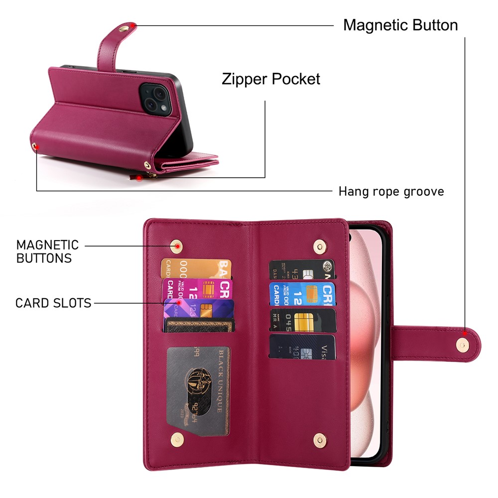 - Ample Storage Features two photo slots, six card slots, one main wallet compartment, and an exterior zippered pocket for coins. Store your ID, cards, cash, and coins securely