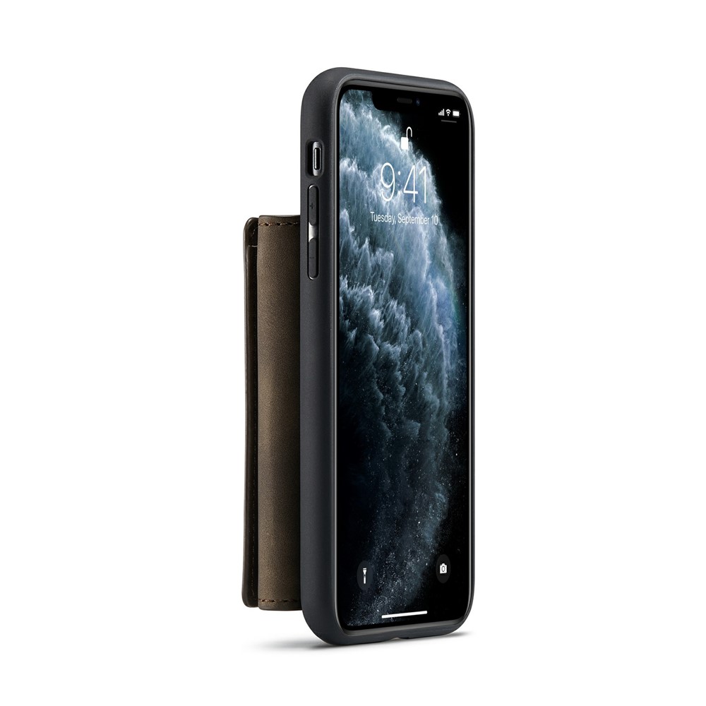 DG.MING M1 Series Magnetic Detachable Wallet 2-in-1 + Hybrid Cover Shell with Kickstand for iPhone 11 Pro Max 6.5 inch - Coffee