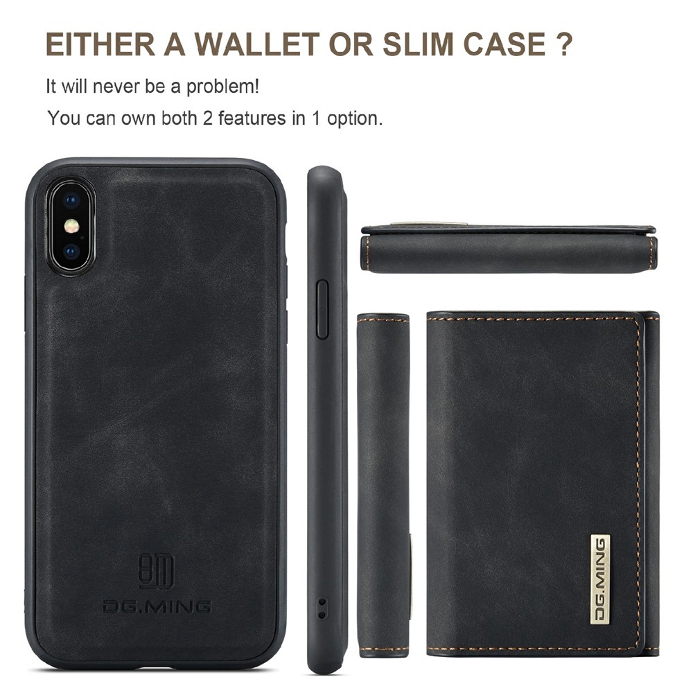 DG.MING M1 Series Magnetic Shockproof Wallet Design Leather Coated Hybrid Case Detachable Cover Shell with Kickstand for iPhone XS Max 6.5 inch - Black