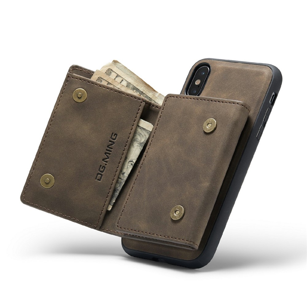 • DG.MING M1 Series Magnetic Shockproof Wallet Design Leather Coated Hybrid Case Detachable Cover Shell with Kickstand for iPhone XS Max 6.5 inch - Brown