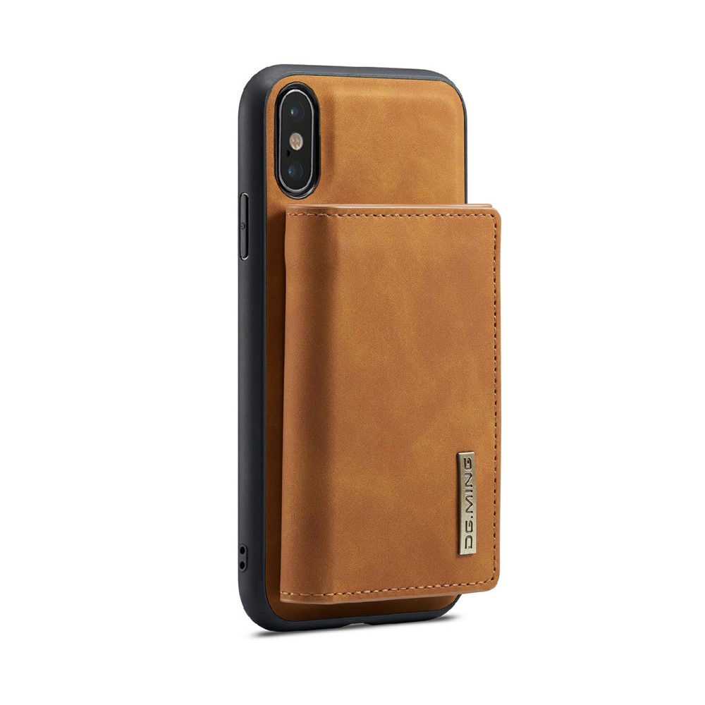 DG.MING M1 Series Magnetic Well-protected Wallet Design Leather Coated Hybrid Case with Kickstand for iPhone X/XS 5.8 inch - Brown