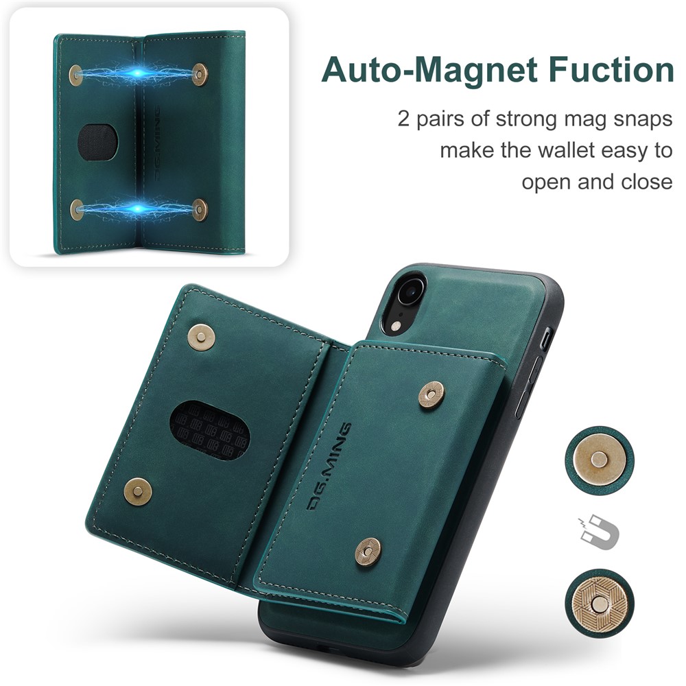 DG.MING M2 Series Detachable 2 in 1 Magnetic Wallet Design Phone Hybrid Case Shell with Kickstand for iPhone XR 6.1 inch - Green