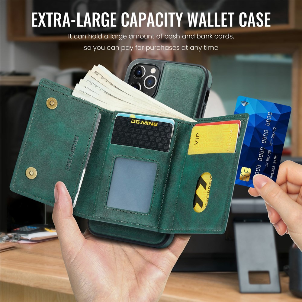 - Detachable Magnetic Trifold Wallt Includes a removable magnetic wallet with three folds, capable of holding cards, IDs, and cash, offering both convenience and functionality