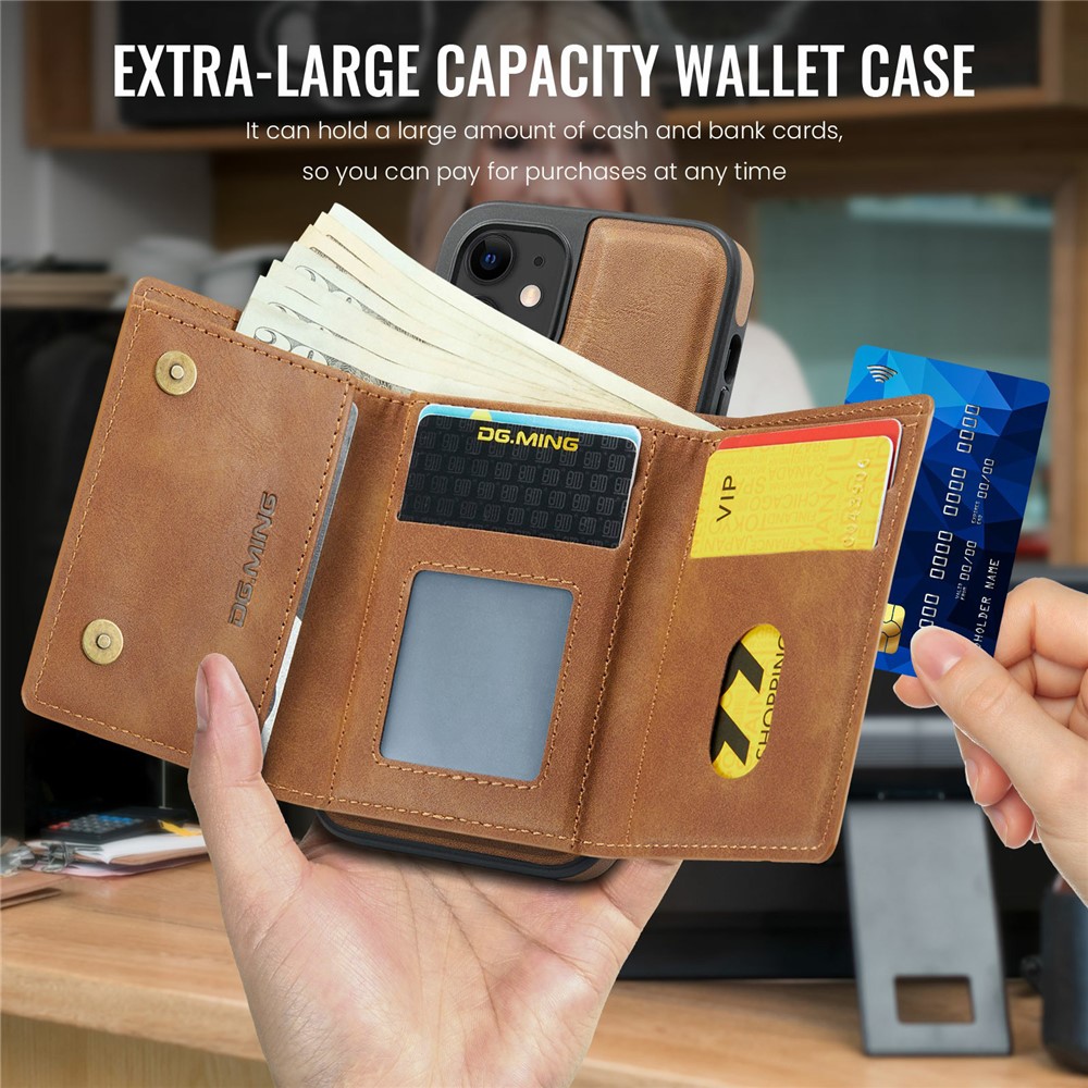 - Detachable Magnetic Trifold Wallt Includes a removable magnetic wallet with three folds, capable of holding cards, IDs, and cash, offering both convenience and functionality