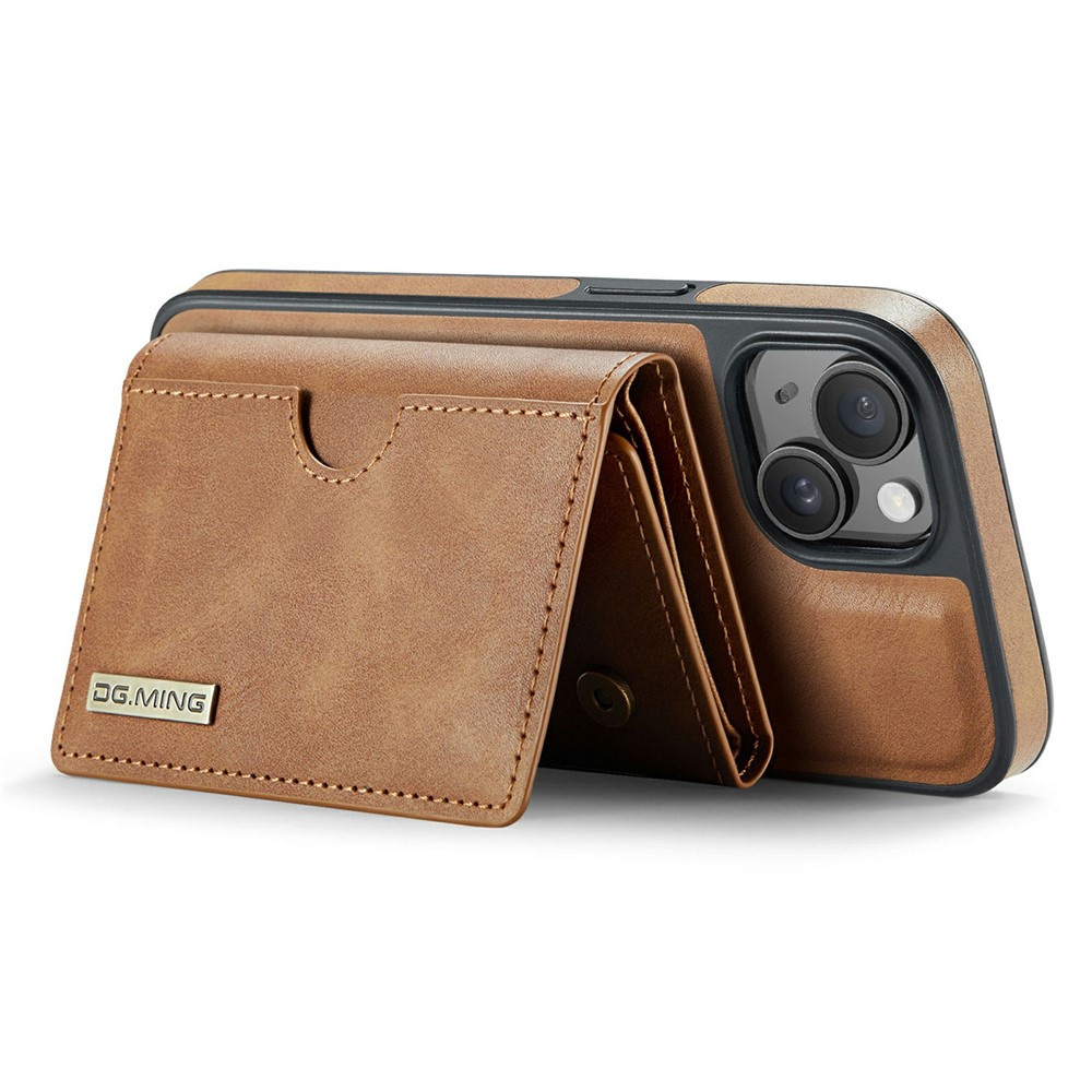 DG.MING M6 Series For iPhone 13 Case Magnetic Wallet PU+PC+TPU Phone Cover - Brown