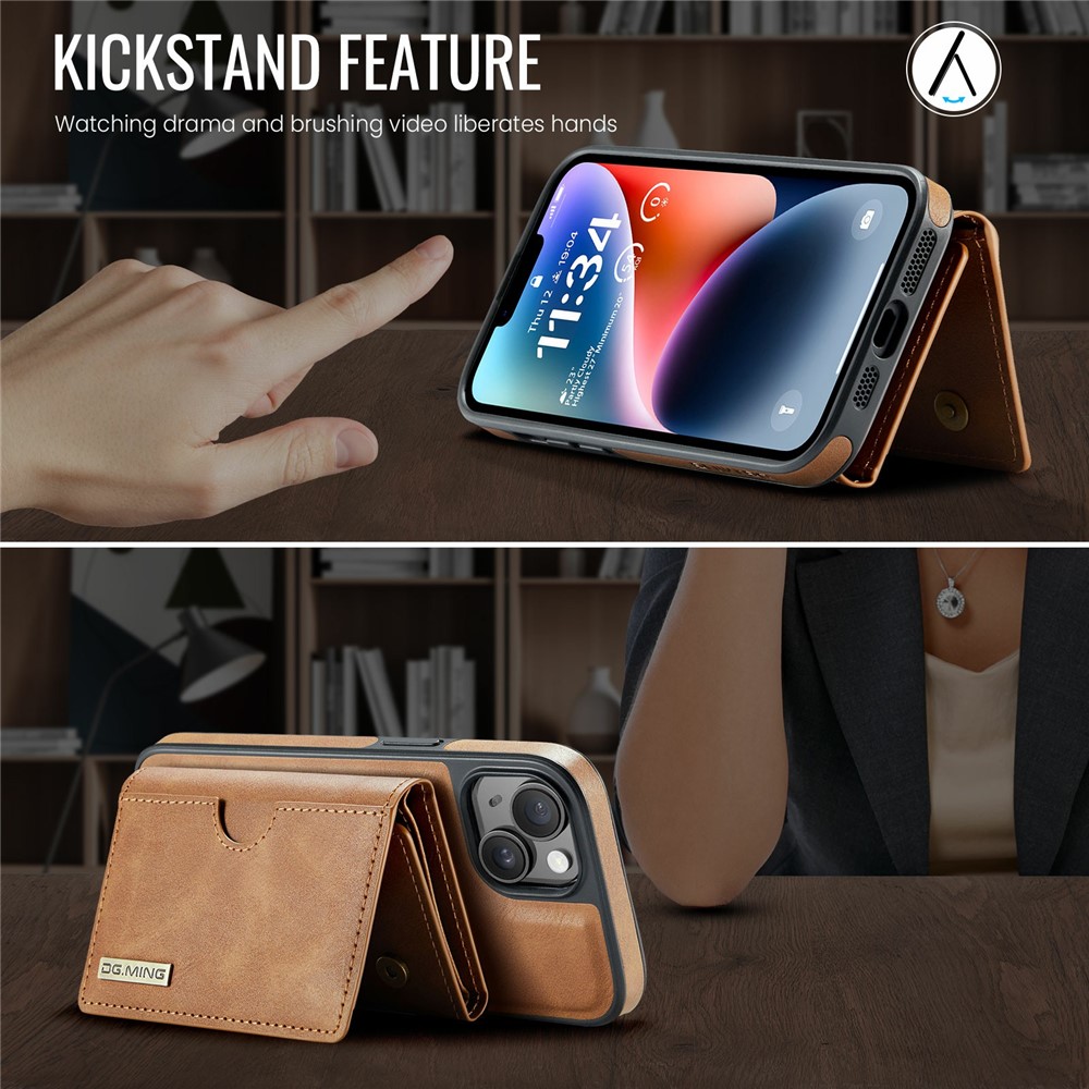 DG.MING M6 Series For iPhone 13 Case Magnetic Wallet PU+PC+TPU Phone Cover - Brown $21.18