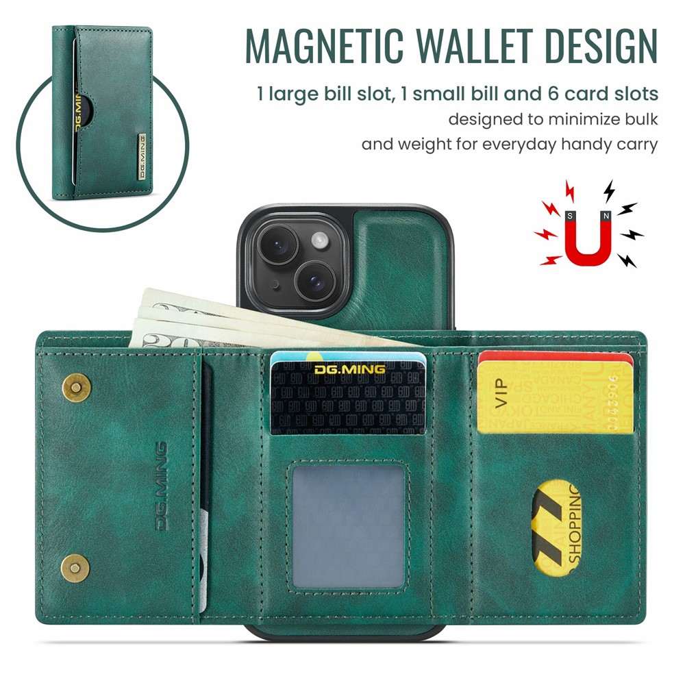 - Detachable Magnetic Trifold Wallt Includes a removable magnetic wallet with three folds, capable of holding cards, IDs, and cash, offering both convenience and functionality