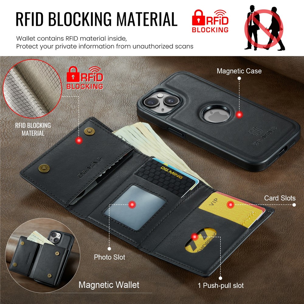 - Detachable Magnetic Trifold Wallt Includes a removable magnetic wallet with three folds, capable of holding cards, IDs, and cash, offering both convenience and functionality