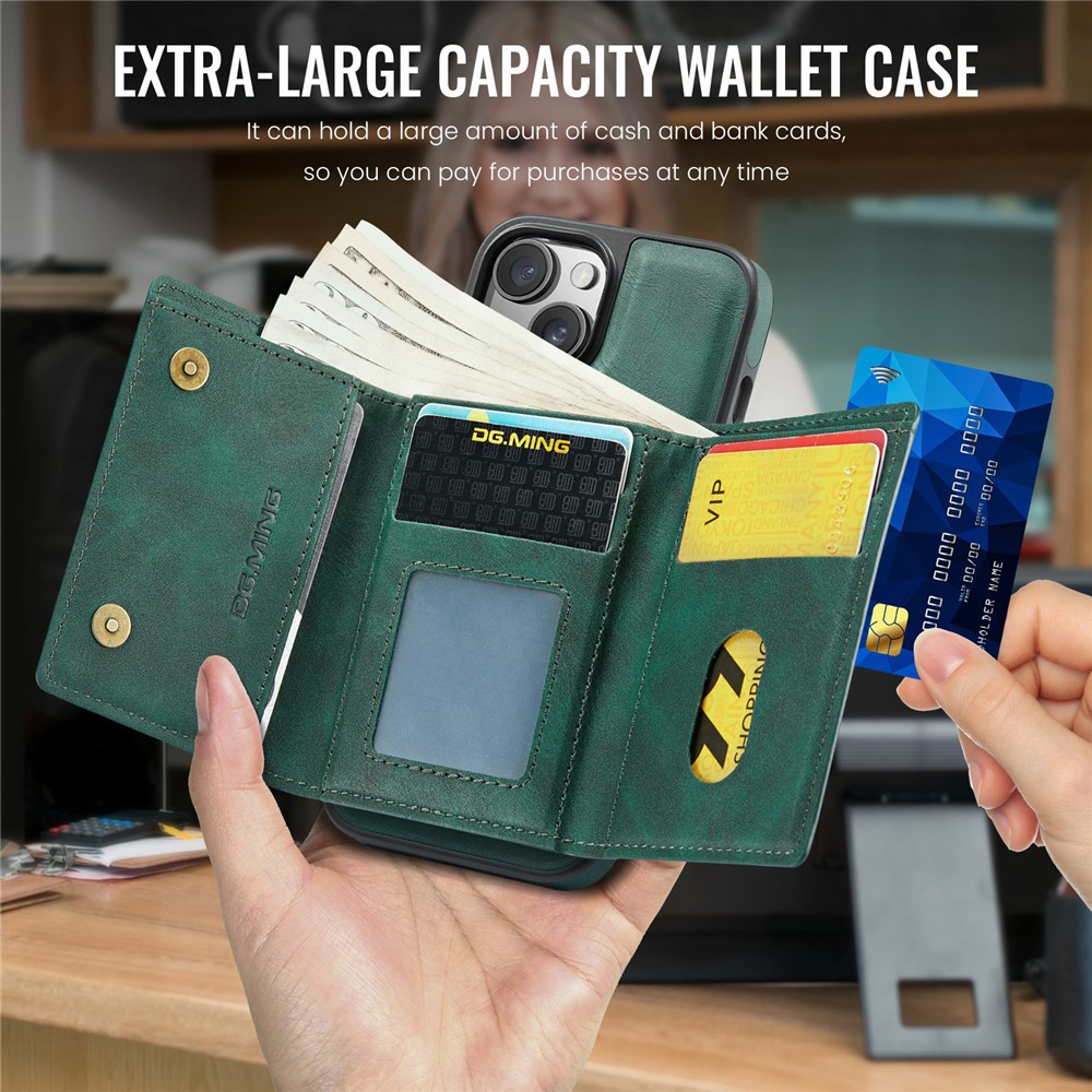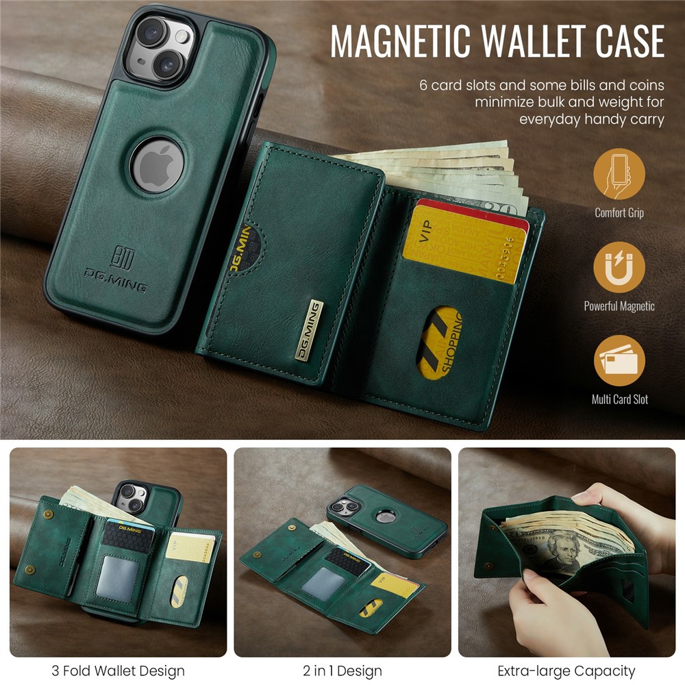 - Detachable Magnetic Trifold Wallt Includes a removable magnetic wallet with three folds, capable of holding cards, IDs, and cash, offering both convenience and functionality