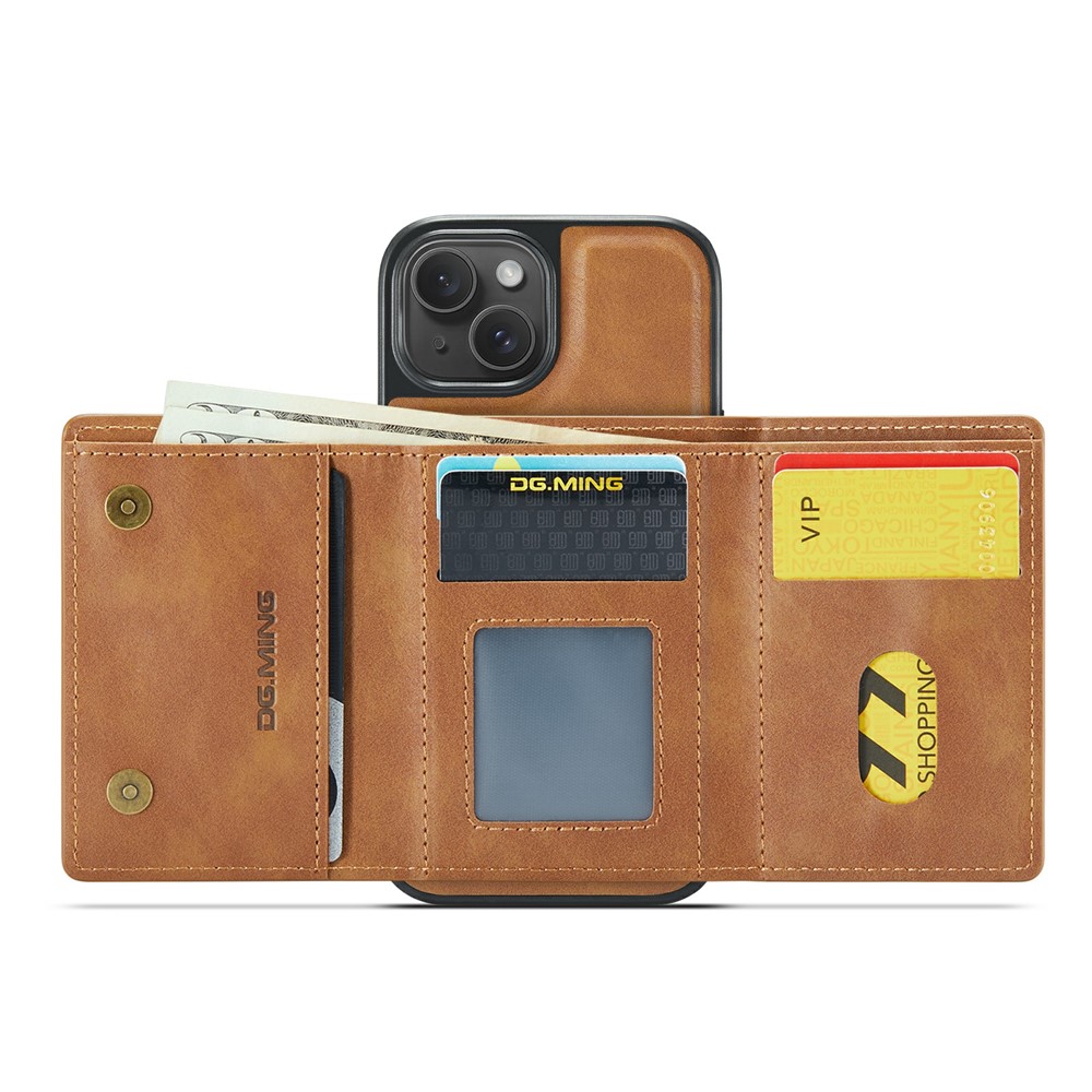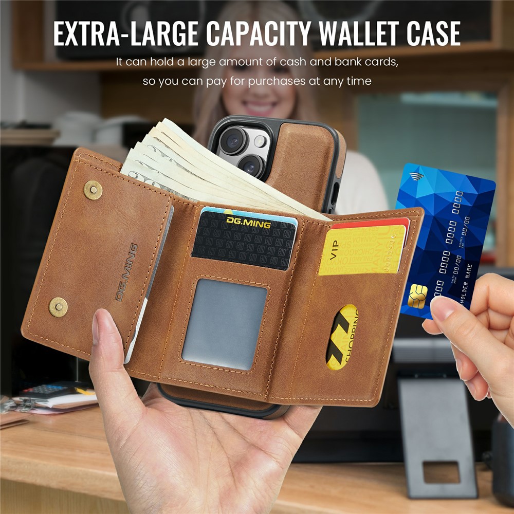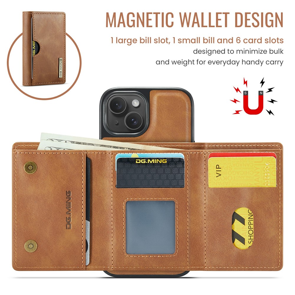- Detachable Magnetic Trifold Wallt Includes a removable magnetic wallet with three folds, capable of holding cards, IDs, and cash, offering both convenience and functionality