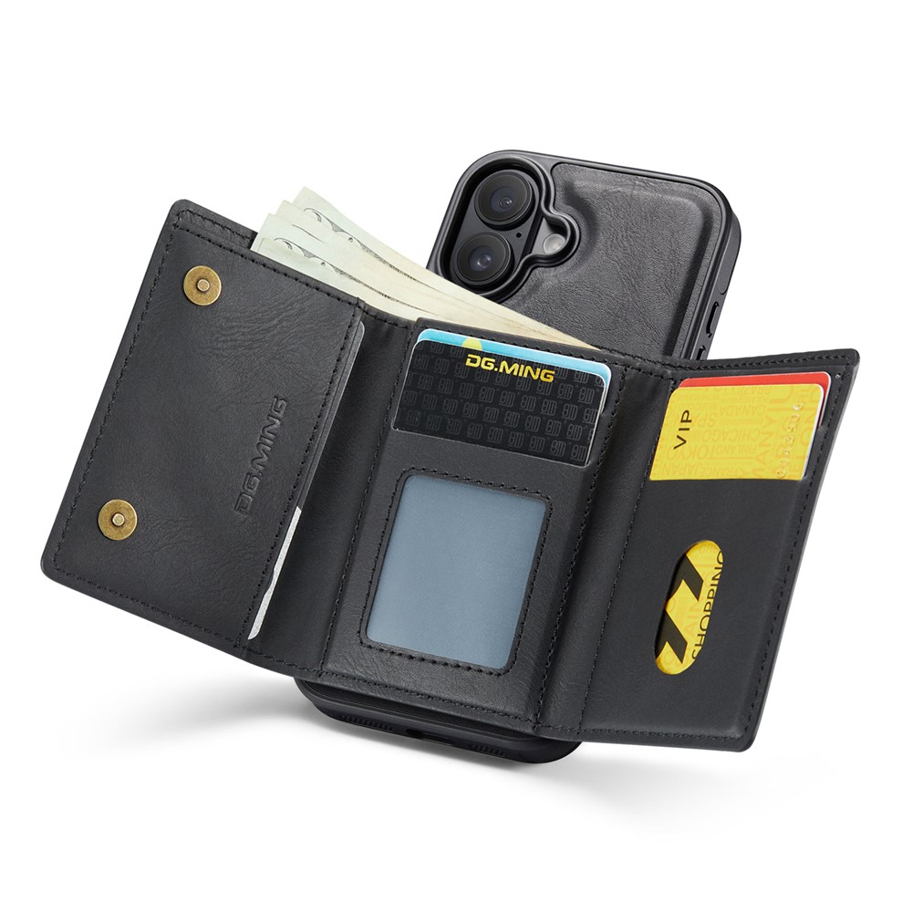 - Detachable Magnetic Trifold Wallt Includes a removable magnetic wallet with three folds, capable of holding cards, IDs, and cash, offering both convenience and functionality