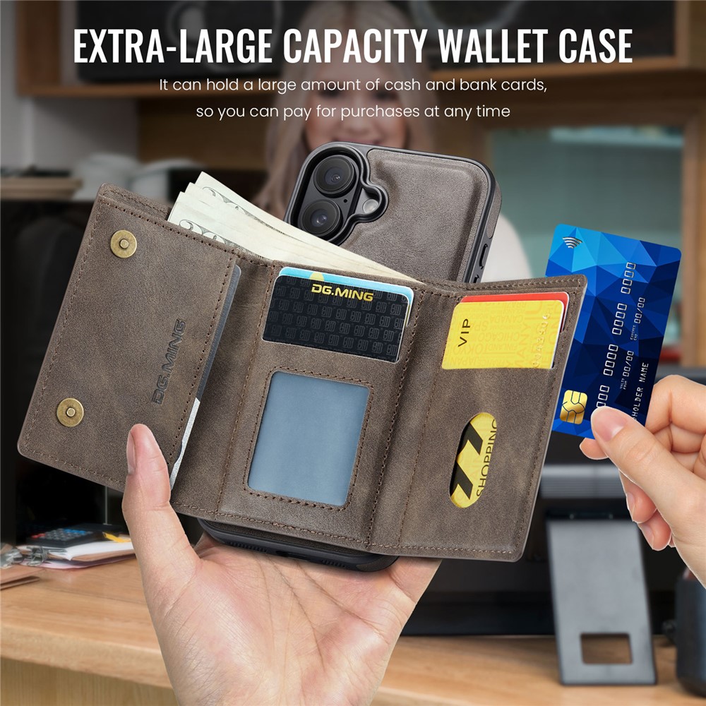 - Detachable Magnetic Trifold Wallt Includes a removable magnetic wallet with three folds, capable of holding cards, IDs, and cash, offering both convenience and functionality