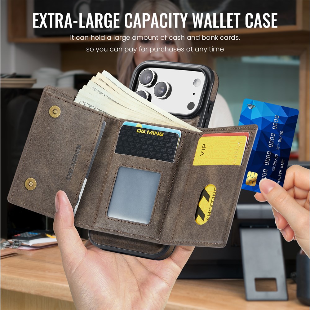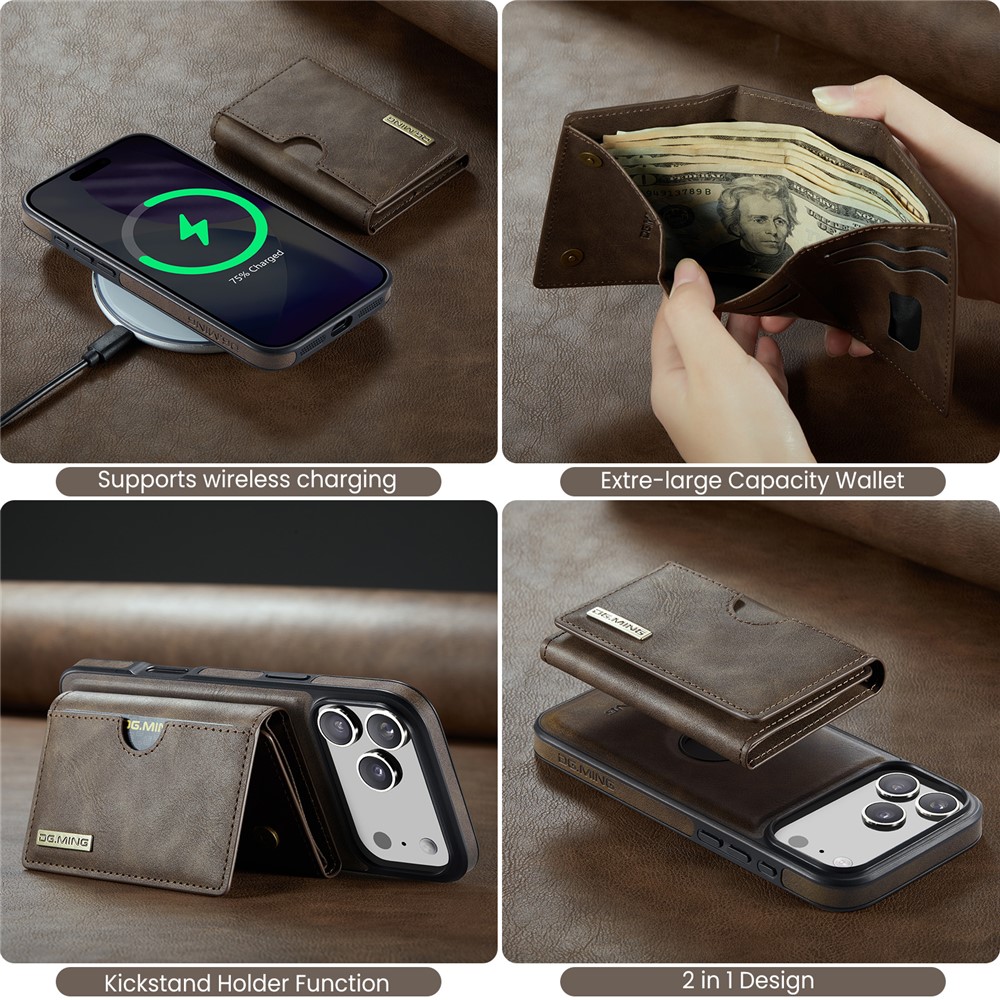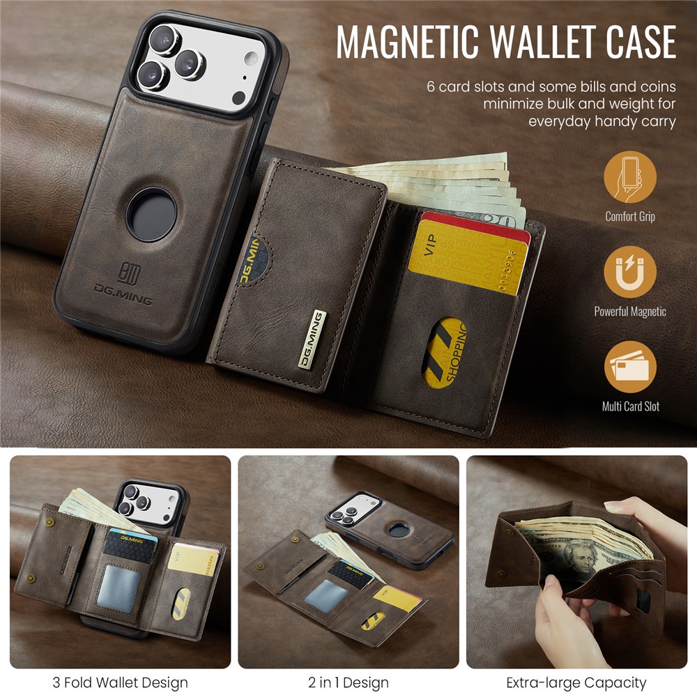 - Detachable Magnetic Trifold Wallt Includes a removable magnetic wallet with three folds, capable of holding cards, IDs, and cash, offering both convenience and functionality