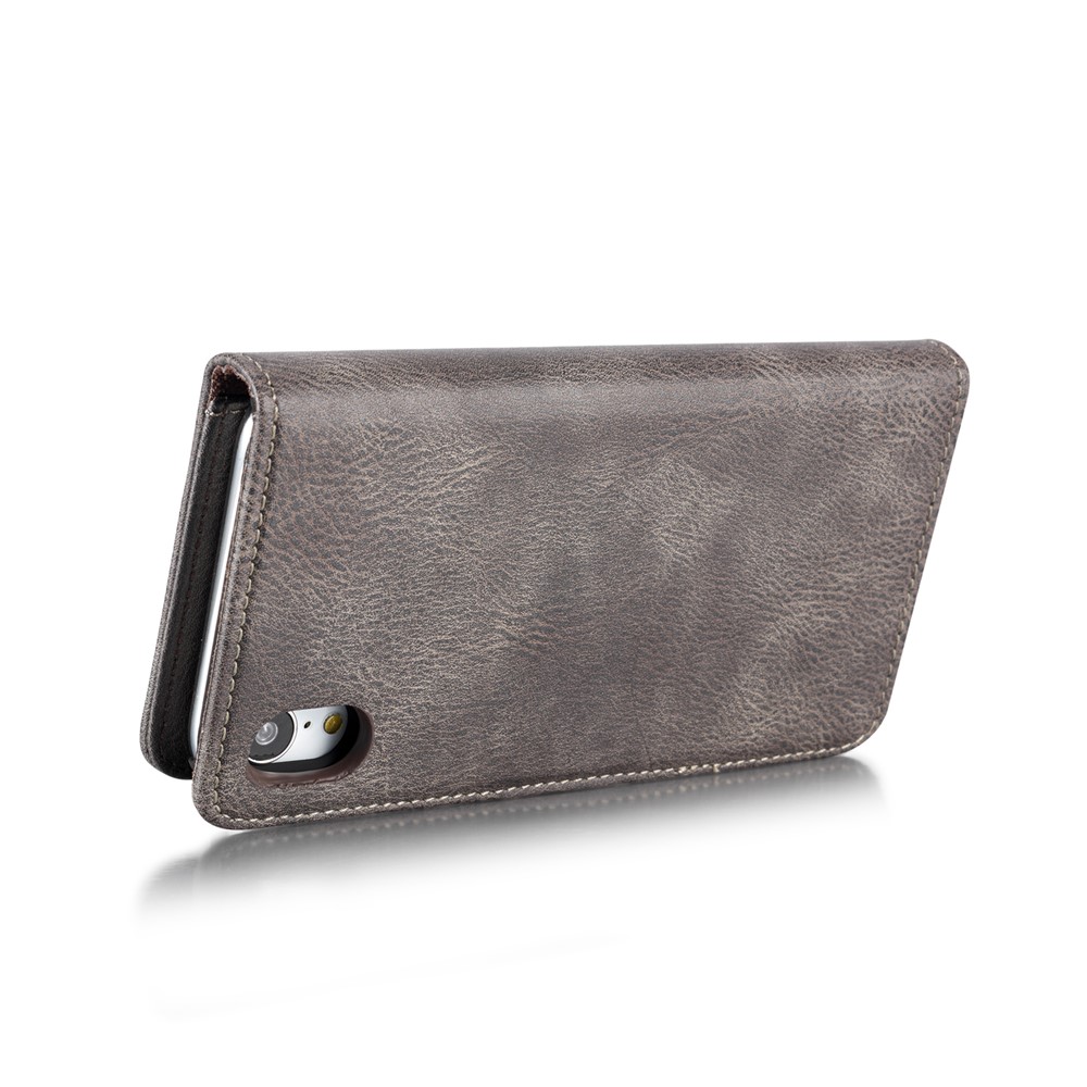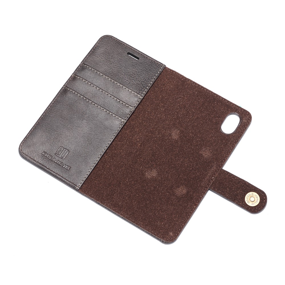 This case features 2-in-1 design with a split leather wallet cover and a detachable leather coated plastic back shell, which can be attached together by magnetism. High quality materials with exquisite workmanship ensure an elegant look and comfortable hand feeling.