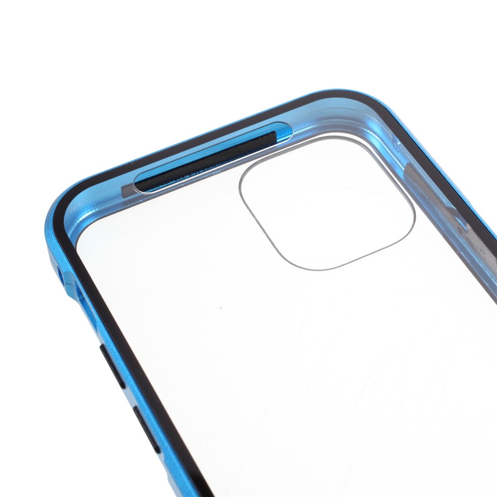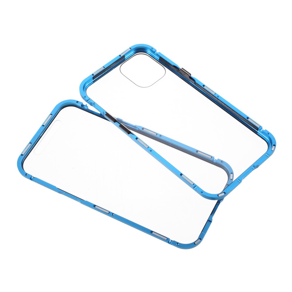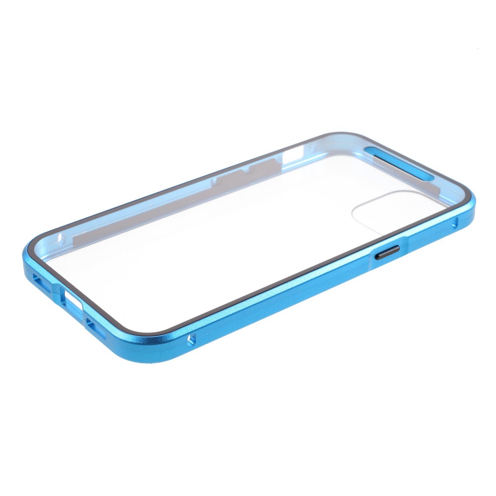 Double-sided Tempered Glass + Magnetic Absorption Metal Frame Phone Case for iPhone 12 mini – Blue