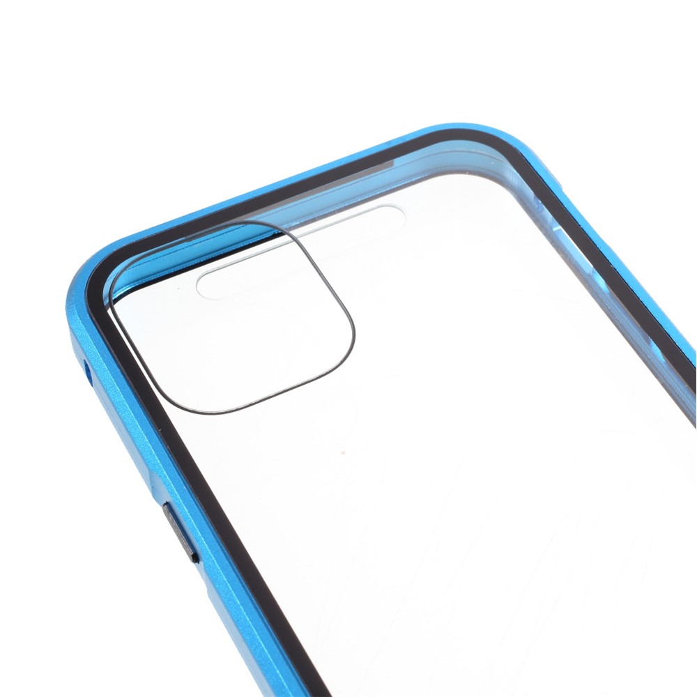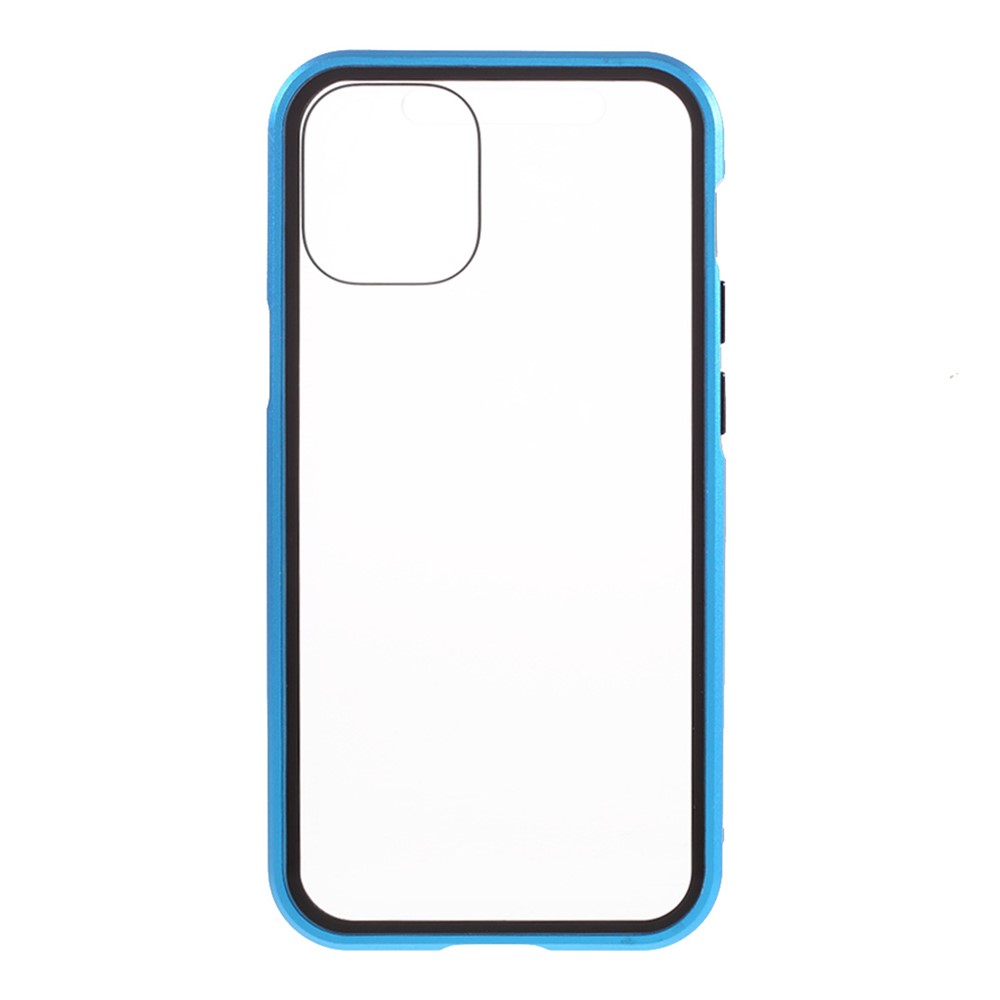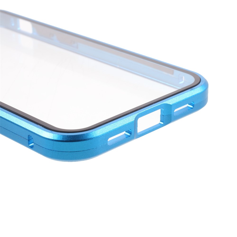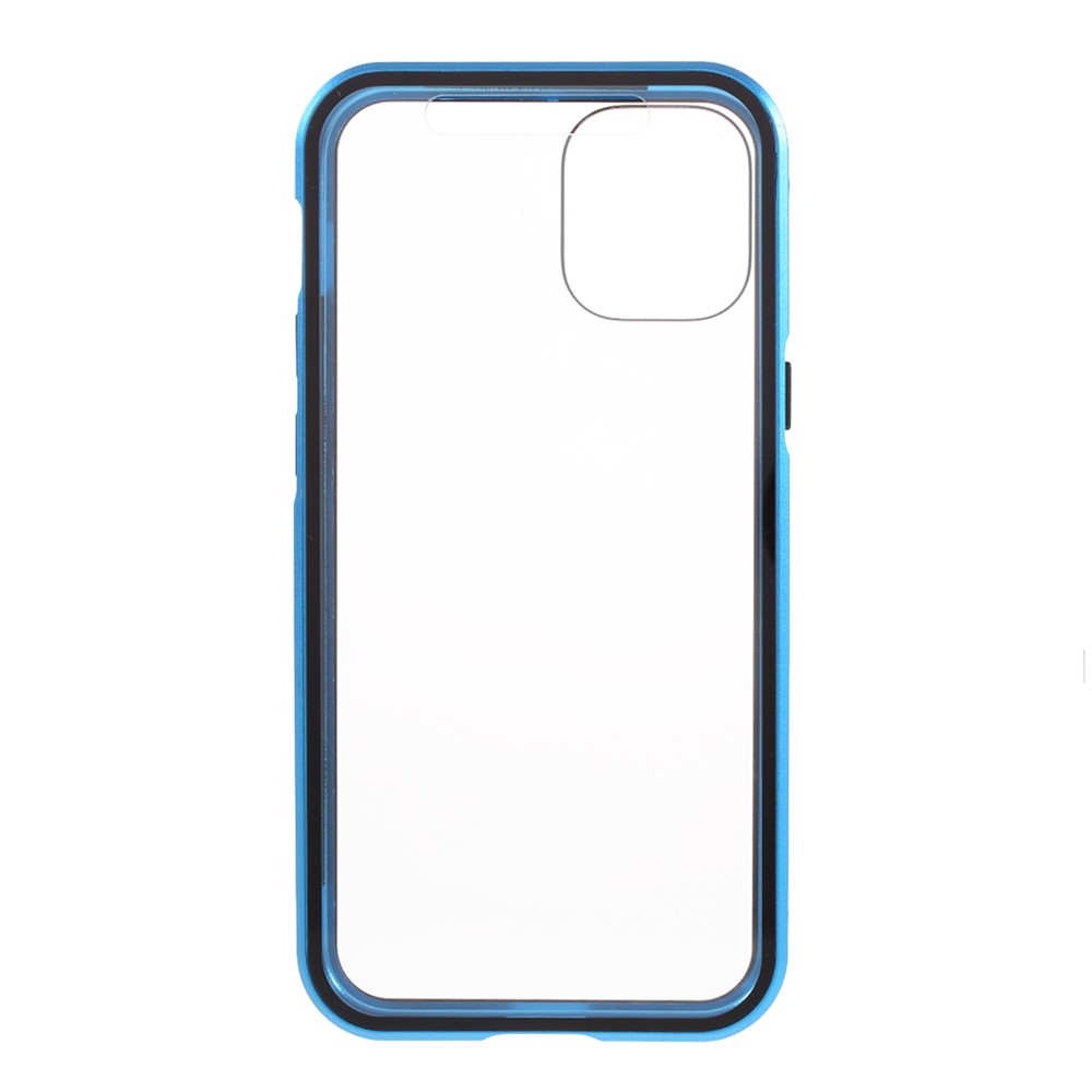 Double-sided Tempered Glass + Magnetic Absorption Metal Frame Phone Case for iPhone 12 mini – Blue