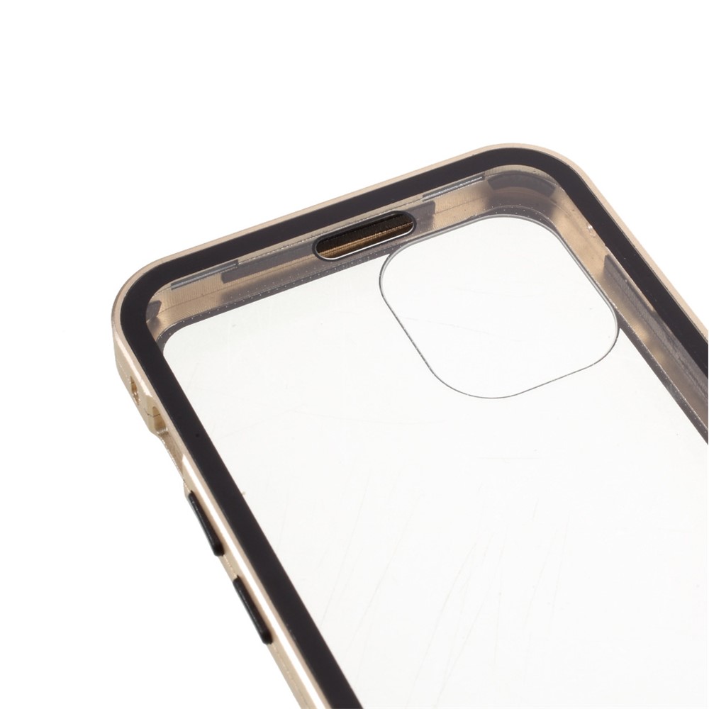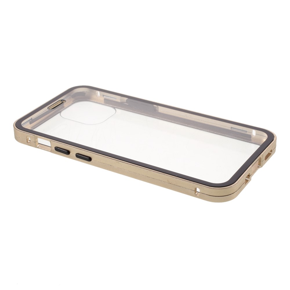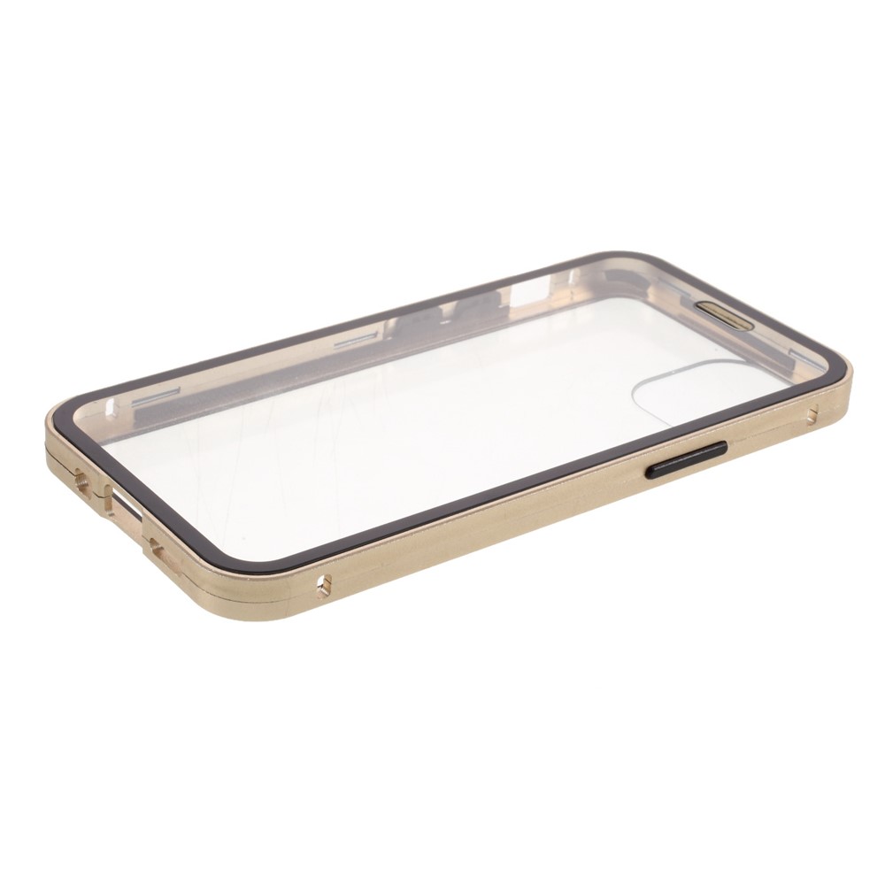 Double-sided Tempered Glass + Magnetic Absorption Metal Frame Phone Case for iPhone 12 mini – Gold