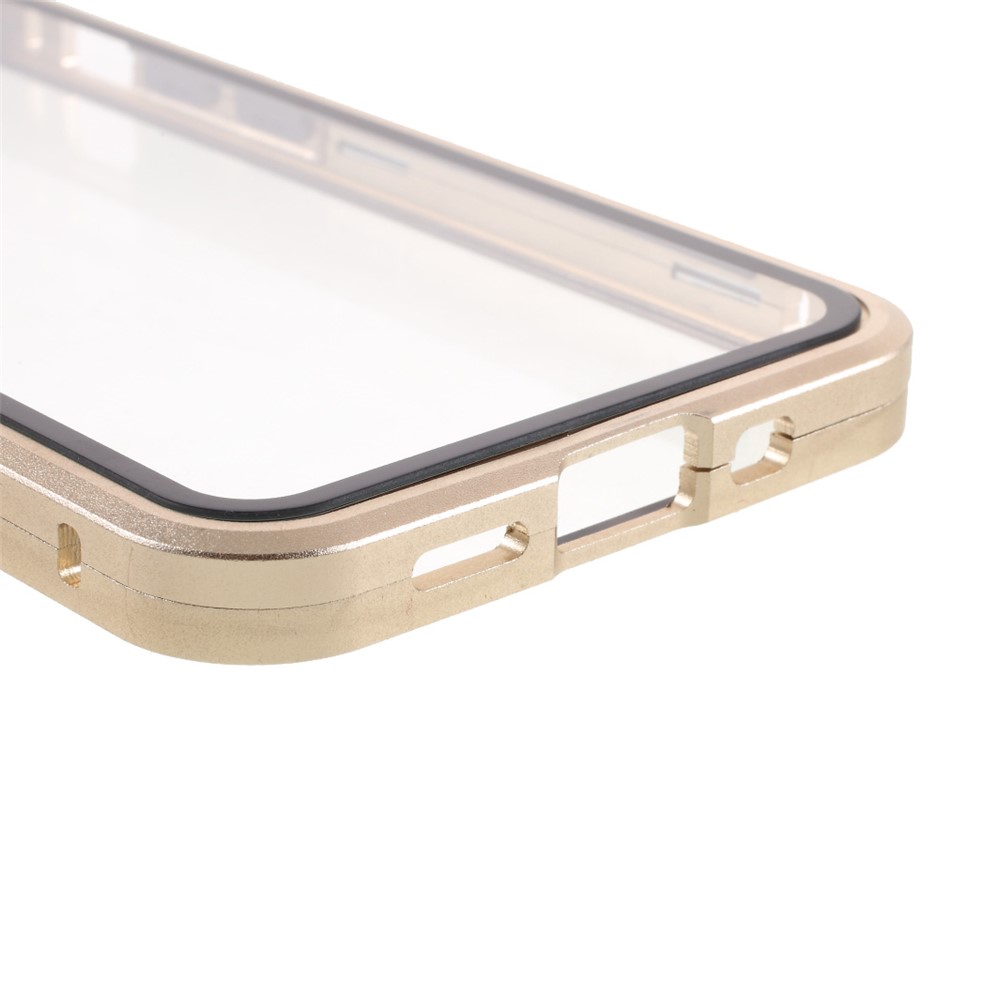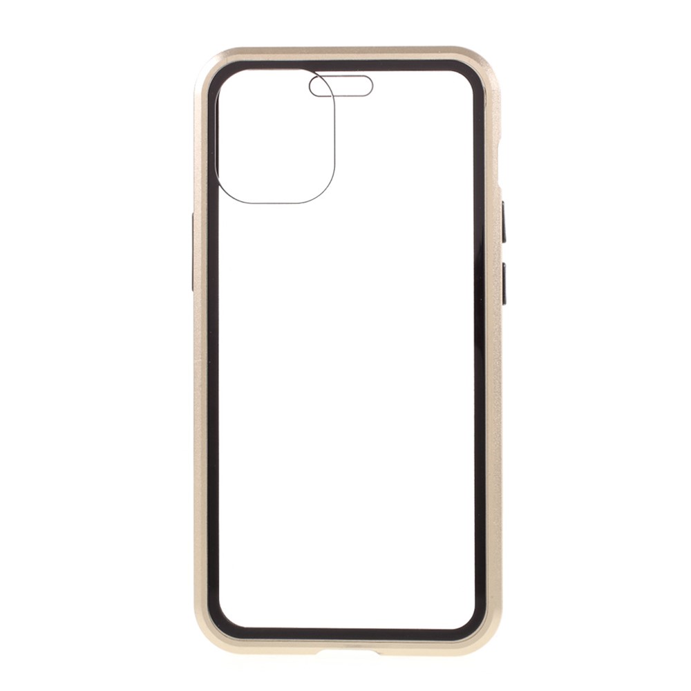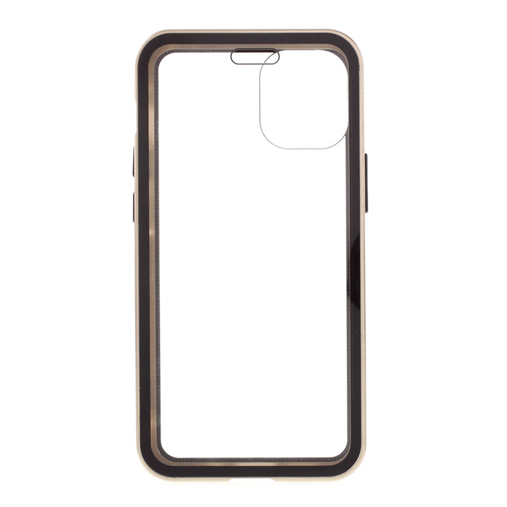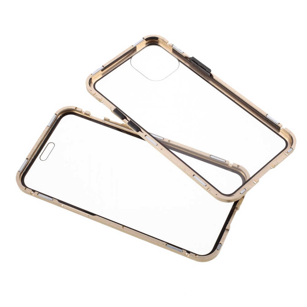 Double-sided Tempered Glass + Magnetic Absorption Metal Frame Phone Case for iPhone 12 mini – Gold