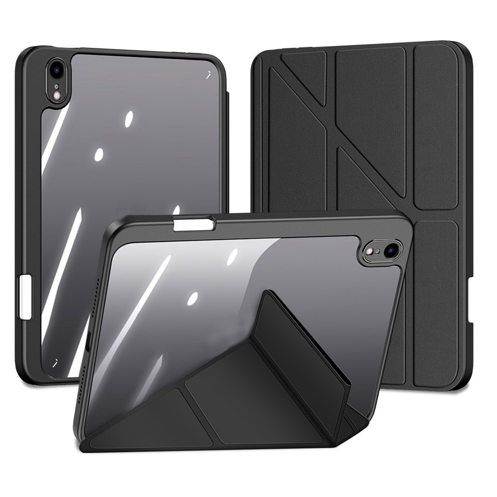 DUX DUCIS Magi Protective Case for iPad mini (2024) / mini (2021) Detachable 2-in-1 Leather+PC+TPU Auto Wake / Sleep Function Tablet Cover with V-Fold Stand – Black