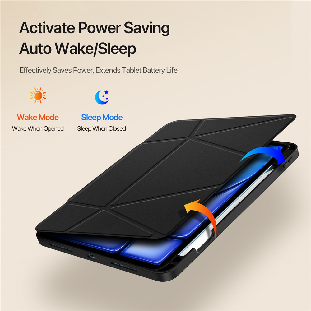 - Auto Wake/Sleep Smart cover design automatically wakes the tablet when opened and puts it to sleep when closed, saving power.