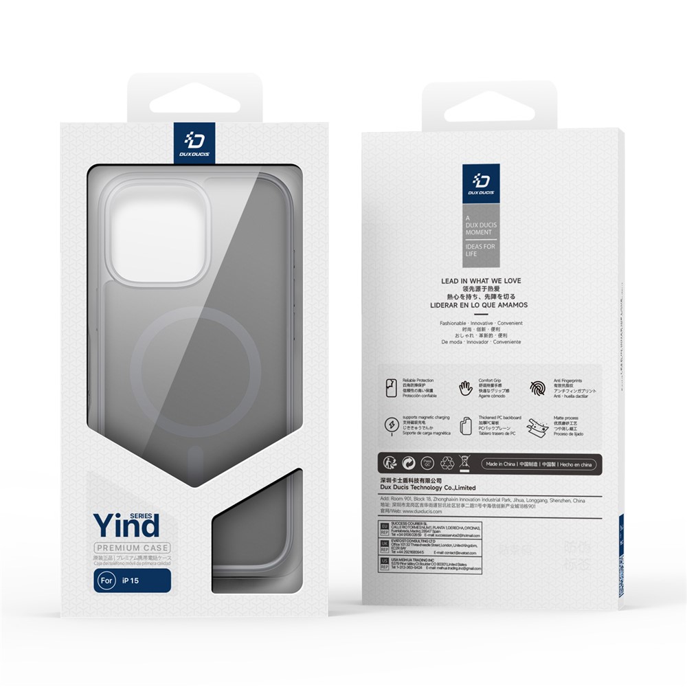 DUX DUCIS Yind Series For iPhone 15 Matte Case Compatible with MagSafe PC+TPU Phone Cover – Grey