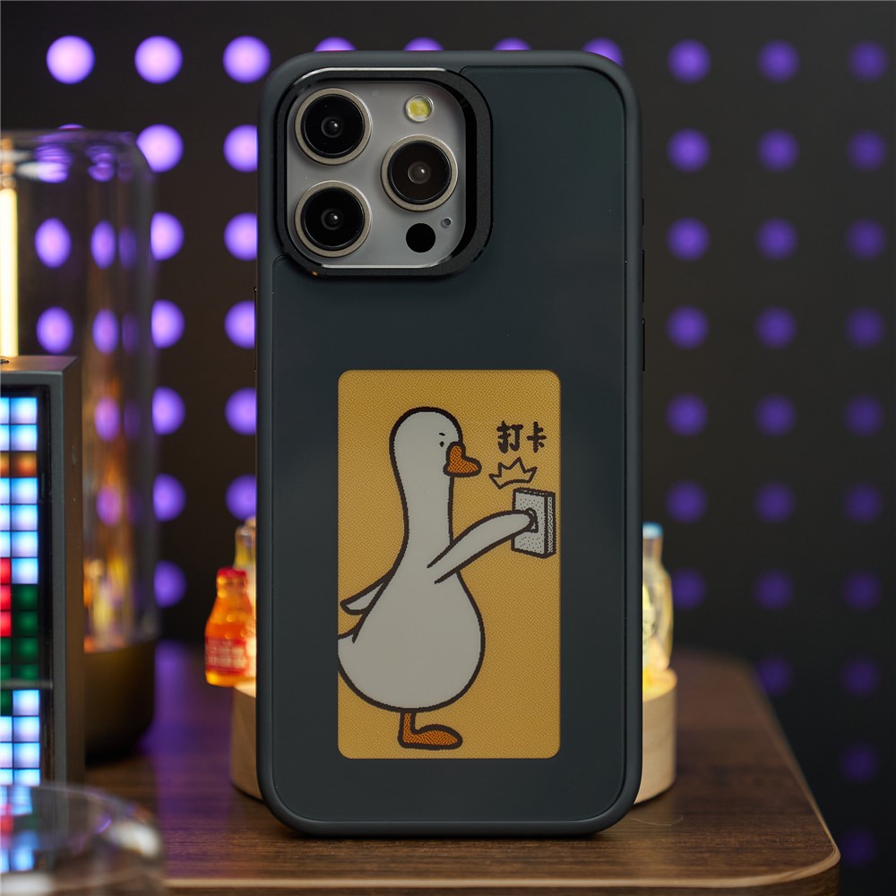 The E Ink Case, an energy-saving and eco-friendly phone case, uses NFC to wirelessly transmit data for screen projection. No batteries or cables are needed, it enables a customizable dual-screen experience directly on your phone case.